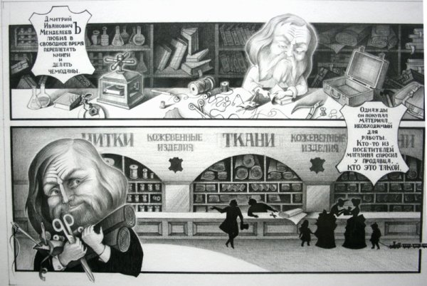 Менделеев - выдающийся русский ученый-химик, создатель периодической системы химических элементов. Его имя и открытия остаются неотъемлемой частью мировой науки и образования. Карикатура Менделеева может быть не только комическим изображением его физических черт, но и способом передать особенности его научного подхода или общественной роли. Такая карикатура может отражать его гениальность, ум и чувство юмора, а также внести свежие идеи и интерпретации в его научное наследие. Карикатуры Менделеева помогают сохранить его память и сделать его достижения доступными новому поколению.