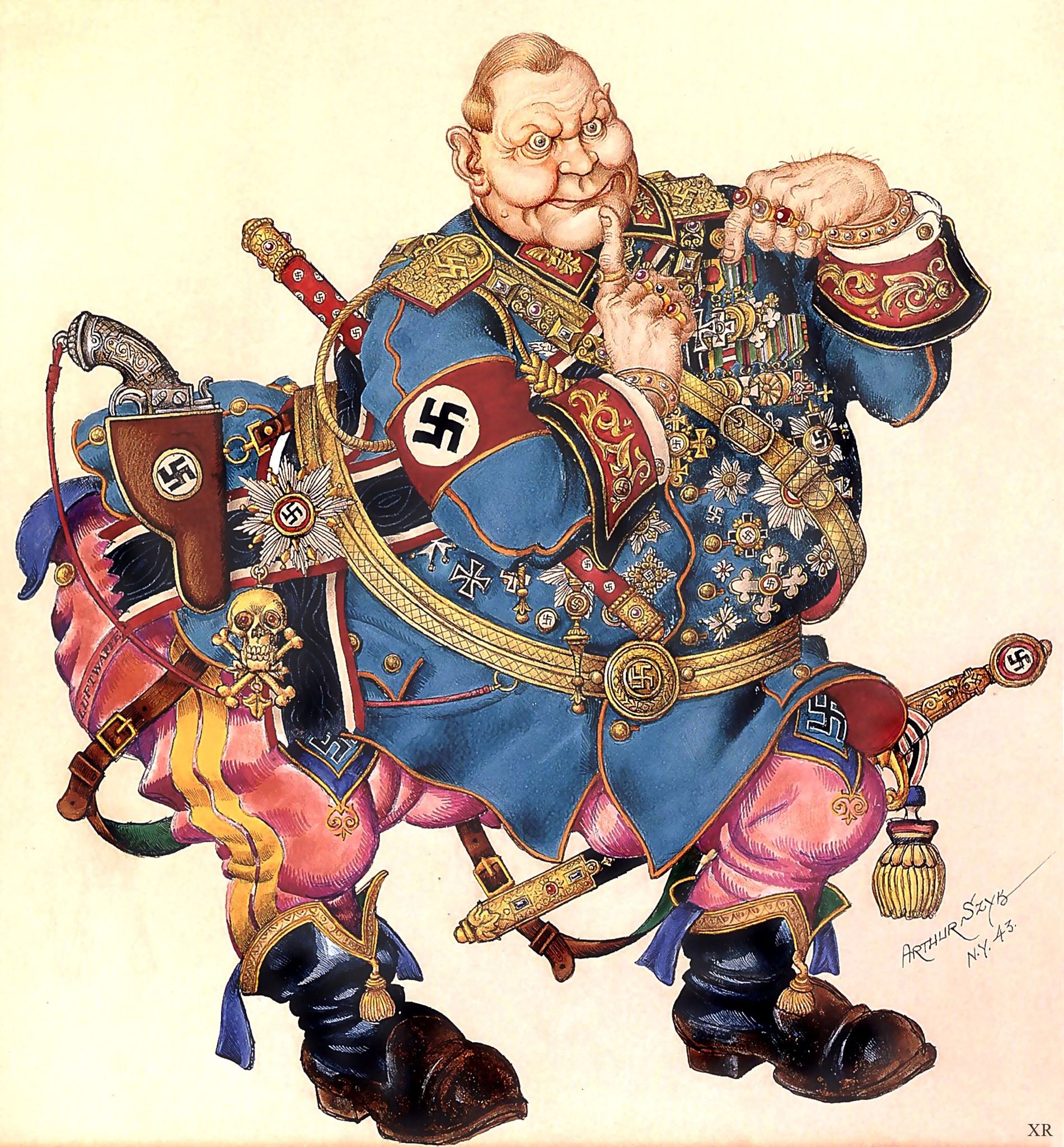 Герман Геринг, известный немецкий политик и военный деятель времен Третьего Рейха, часто становился объектом карикатурных изображений. В своих работах художники подчеркивали не только его значимость в политической сфере, но и его эксцентричность, жадность и амбиции. Карикатуры на Геринга зачастую отражали его обжорство и роскошный образ жизни, а также его роль в нацистской пропаганде и преступлениях во время Второй мировой войны. Эти карикатуры стали неотъемлемой частью исторического наследия и помогают нам лучше понять и запомнить сложные события тех времен.
