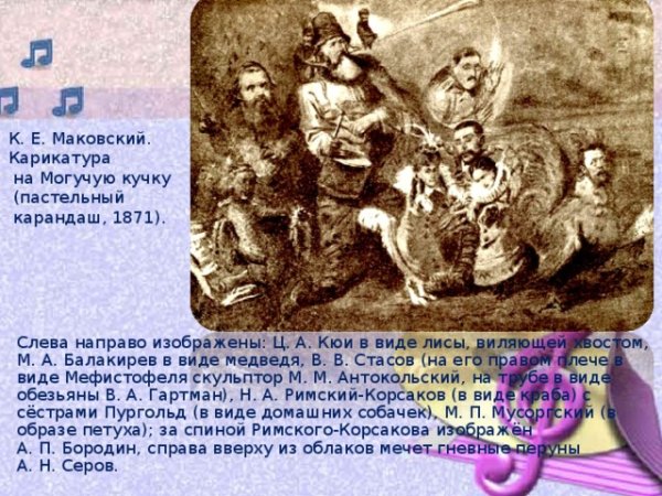 Карикатура на могучую кучку маковский – это оригинальный и забавный способ изображения сюжета, связанного с известной картиной Маковского "Могучая Кучка". В этой карикатуре главными героями становятся маленькие маки, которые образуют смешные и необычные композиции, а также выполняют различные действия. Такая карикатура может стать отличным подарком или элементом декора, который привнесет юмор и игривость в любое помещение. Позвольте этим маленьким макам оживить вашу обстановку и поднять настроение!