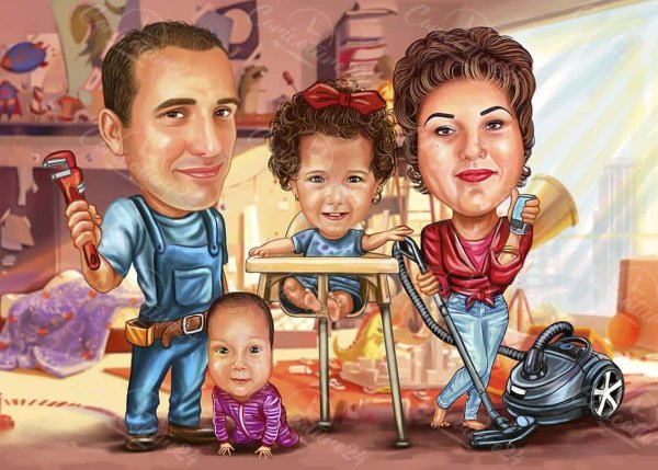Карикатура "папа на хозяйстве" - это забавное изображение, которое олицетворяет ситуации и проблемы, с которыми могут столкнуться отцы, занимающиеся домашними делами. Она часто показывает папу в роли неуклюжего и неловкого хозяина, который пытается разобраться с повседневными задачами, такими как кормление детей, приготовление еды или уборка дома. Карикатура весело и с иронией подходит к этим ситуациям, заставляя нас улыбнуться и понять, что быть папой на хозяйстве может быть сложно, но в то же время очень серьезной и ответственной задачей.