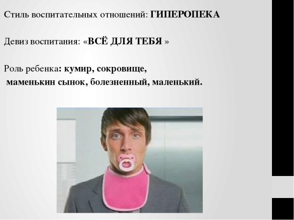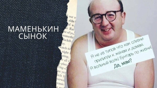 Маменькин сынок - это яркая и насмешливая карикатура, которая символизирует образ молодого человека, зависимого от своей матери и неспособного самостоятельно принимать решения. Эта характеристика выражается через высокую степень эмоциональной и физической зависимости от матери, а также нежелание или неспособность взять на себя ответственность за свою жизнь. Карикатурный образ Маменького сынка здесь использован для комического эффекта и подчеркивания определённых типов поведения и характеристик личности.