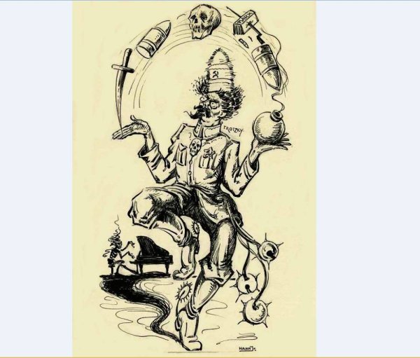 Троцкий - известная политическая фигура, которая оставила большой след в истории. Его образ часто становится объектом карикатур и сатиры. В таких изображениях Троцкого часто преувеличиваются его характерные черты – огромные усы, глубокие глаза и характерная поза. Карикатуры на Троцкого часто используются для подчеркивания его влияния и роли в истории, а также для передачи некоторых его особенностей и характеристик.