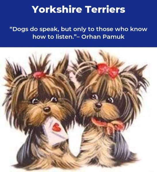 Йоркширский терьер - это порода собак, которая привлекает внимание своим неповторимым внешним видом и яркой индивидуальностью. Они известны своей миниатюрной и компактной структурой тела, длинной шелковистой шерстью, а также характерной головой с выразительными глазами и маленькими ушками. Йоркширские терьеры обладают игривым и жизнерадостным характером, они очень преданные и лояльные питомцы. Впрочем, несмотря на свою нежность и красоту, они также известны своим бойцовским духом и решительностью, что делает их отличными сторожевыми собаками. Если вы ищете верного компаньона, который принесет радость и любовь в вашу жизнь, йоркширский терьер - прекрасный выбор!