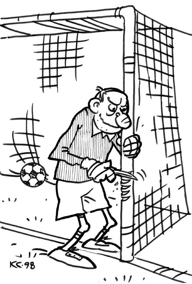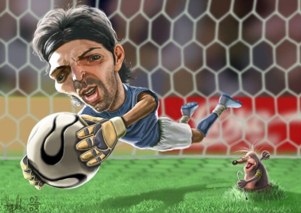 Карикатура "Вратарь" - это яркое и забавное изображение футбольного вратаря, которое наверняка вызовет улыбку у любителей спорта. В этой карикатуре вы найдете все характерные черты и особенности вратарей: защитная экипировка, огромные перчатки, готовность ловить мячи и делать невероятные сейвы. Она передает атмосферу игры на поле, энергию и напряжение, сопровождаемые комическими деталями и юмористическими элементами. Карикатура "Вратарь" отлично подойдет для оформления спортивных помещений, футбольных клубов или просто как декоративный элемент для создания позитивной и задорной атмосферы.