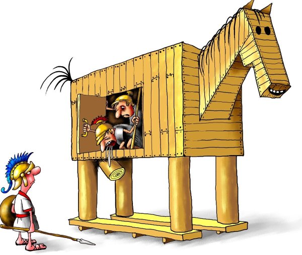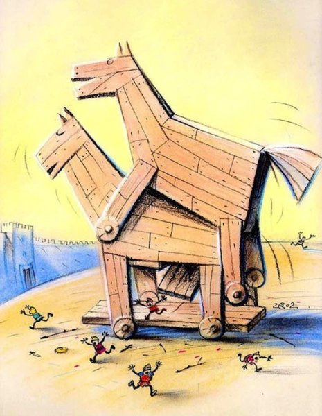 Троянский конь - это известный мифологический символ, который стал основой для создания множества карикатур и иллюстраций. Эта знаменитая история рассказывает о войне между городами Троя и Ахея, где последние не могли победить Трою. Тогда они придумали хитроумный план - построили огромного деревянного коня, внутри которого прятались воины. Представляя его как подарок, они ввезли его в город, и ночью воины вышли из скрытых отсеков и открыли ворота вражеским войскам. Трояне были полностью разорены. Карикатуры на троянского коня часто отображают смешные и нелепые ситуации, играя на противоположности - огромный конь в комических обстоятельствах или маленькие люди, пытающиеся управлять огромным деревянным животным. Эти карикатуры воспринимаются как юмористическая интерпретация классического мифа и являются популярным средством визуального изображения и передачи истории троянского коня.