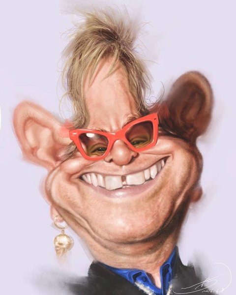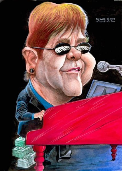 Элтон Джон – легендарный британский музыкант, певец и композитор, чья карьера продолжается уже более пяти десятилетий. Он отличается яркой индивидуальностью, необычным стилем одежды и причёсок, что делает его незабываемой фигурой в музыкальной индустрии. Но самое заметное и узнаваемое внешнее проявление Элтона Джона – это его фирменные очки-круглые оправы, которые стали символом его имиджа. Многочисленные карикатуры на Элтона Джона, изображающие его с этим аксессуаром, подчёркивают его уникальность и эксцентричность. Будь то пестрая палитра цветов или необычные формы оправ, карикатуры помогают передать его выразительность и творческий потенциал.