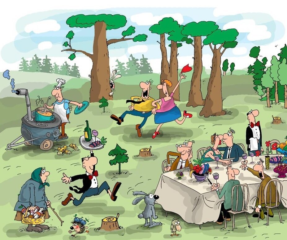 Карикатура "пикник" - это увлекательное и забавное произведение искусства, которое отображает сцену пикника в смешной и ироничной форме. В ней можно увидеть яркие и выразительные персонажи, а также различные ситуации, связанные с проведением пикника. Карикатура позволяет по-новому взглянуть на обычные события и привычные действия, добавляя им юмористический акцент. Она подходит для любителей нестандартного и остроумного искусства, а также тех, кто ценит хорошее настроение и чувство юмора.