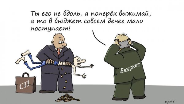 Налоговик - это карикатурный образ государственного служащего, работающего в налоговой системе. В карикатуре налоговик часто изображается как жестокий и бесчеловечный бюрократ, который несет налоговое бремя на плечах граждан. Он может быть изображен с большими весами, на которых свисает огромный мешок денег, символизирующий налоговую нагрузку. Такая карикатура подчеркивает негативное отношение некоторых людей к налогообложению и государственному аппарату в целом. Однако следует помнить, что карикатура - это всего лишь художественное выражение определенной точки зрения, и необходимо воспринимать ее с некоторой долей юмора и иронии.