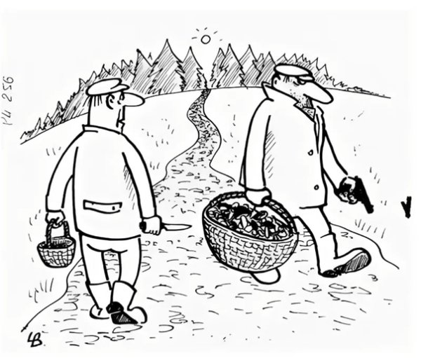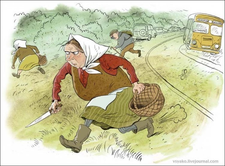 Грибники карикатура - это забавное и оригинальное изображение людей, увлекающихся сбором грибов. Карикатуры на грибников часто отражают особенности их внешности, поведения и страсти к грибам. Они могут быть смешными, карикатурными и порой немного преувеличенными, чтобы вызывать улыбку и смех у зрителя. Грибники карикатура - это не только художественное произведение, но и своеобразный шутливый комментарий нашей общей любви к природе и грибам. Эти карикатуры могут стать отличным подарком для грибников или просто ярким элементом интерьера, который добавит юмора и позитива в нашу жизнь.