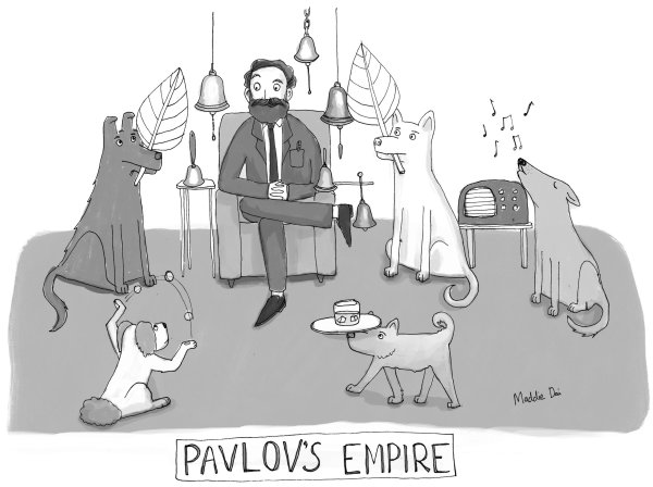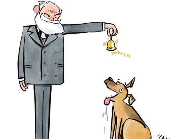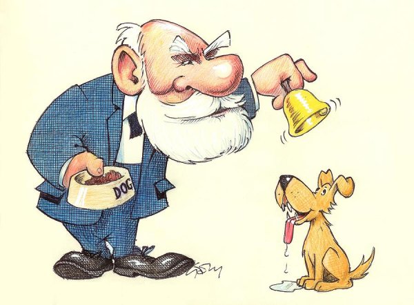 Собака Павлова - это знаменитая карикатура, которая стала иконой юмористического изображения классического эксперимента Ивана Павлова. Этот эксперимент был проведен в начале XX века и известен своей связью с условными рефлексами. Картина показывает собаку, которую Павлов обучил сопоставлять звук звона колокольчика с получением еды. Когда собака услышивает звук, она начинает слюниться, даже если еды нет. Эта карикатура является художественной интерпретацией этого эксперимента и символизирует умение животных и людей ассоциировать различные стимулы и реагировать на них. Неповторимый стиль и смешные детали делают эту карикатуру любимой среди поклонников юмора и научных открытий.