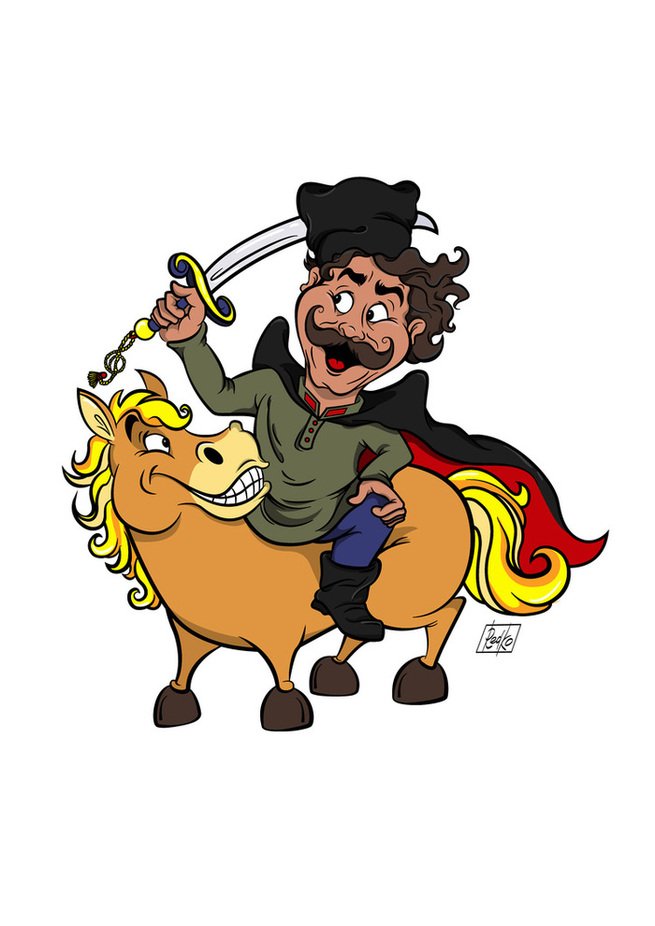 Карикатура "Козак" - это уникальный и оригинальный художественный образ, который захватывает воображение и вызывает улыбку. В ней изображен козак - символ силы и бесстрашия, но в комическом и подвижном стиле. Резкие черты лица, выразительные глаза, рогатый шлем и пушистая борода создают яркое и запоминающееся впечатление. Карикатура "Козак" - это не только доставка юмора и развлечение, но и способность передать характер и особенности этого героя. Будь то настоящий карнавал или просто дружеская встреча, эта карикатура будет отличным дополнением и привлечет внимание всех окружающих.