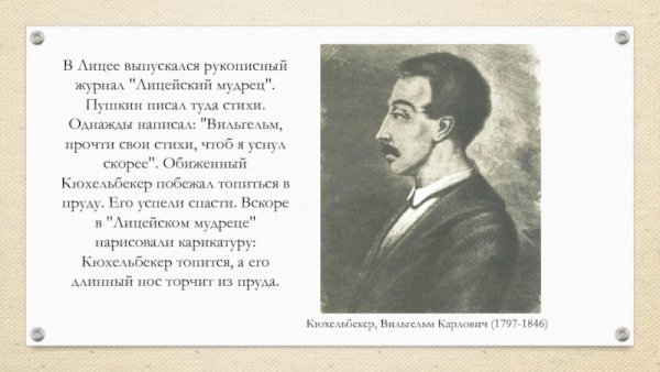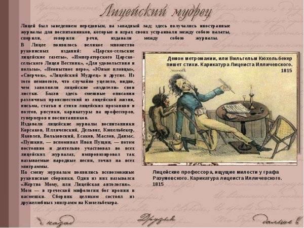 Кюхельбекер - это название популярной карикатурной фигуры, которая стала популярной благодаря своей остроте и сатирическому подходу. Эта карикатура изображает типичного человека, который является персонажем многих смешных сценариев и комических ситуаций. Кюхельбекер обычно изображается в различных ситуациях и обстоятельствах, что делает его таким узнаваемым и забавным. Благодаря своей харизме и уникальности, Кюхельбекер стал одним из самых известных персонажей в мире карикатуры.