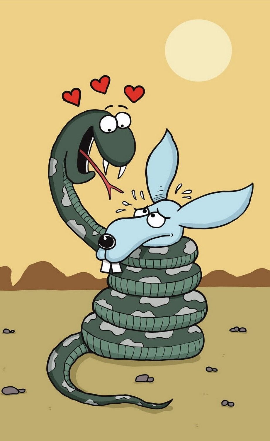 Карикатура "Удав" - это яркое и забавное произведение искусства, которое порадует любителей юмора и остроумия. В ней изображен удав, символизирующий гладкость и гибкость, с привлекательной и комической мимикой лица. Используя свой особый стиль и тонкий юмор, автор передает зрителям искрометные шутки и сатирические отсылки к различным сферам жизни. Карикатура "Удав" является прекрасным выбором для декорирования интерьера, подарка или просто для приятного времяпровождения и хорошего настроения.
