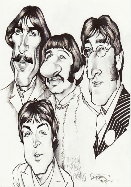 Beatles карикатура - это веселое и забавное изображение легендарной британской рок-группы The Beatles. В карикатуре можно увидеть известных музыкантов - Джона Леннона, Пола Маккартни, Джорджа Харрисона и Ринго Старра - в ярких и эксцентричных образах. Карикатура позволяет взглянуть на легендарную группу с юмором и игривостью, добавляя элементы комического искажения в их физический облик. Это отличный способ весело отобразить талант и безупречный стиль музыкантов, которые оказали огромное влияние на мировую музыку. Если вы являетесь поклонником The Beatles или просто любите оригинальные и нестандартные произведения искусства, то Beatles карикатура - отличный выбор для вас. Она станет прекрасным украшением вашего интерьера или оригинальным подарком для любителя музыки и хорошего настроения.
