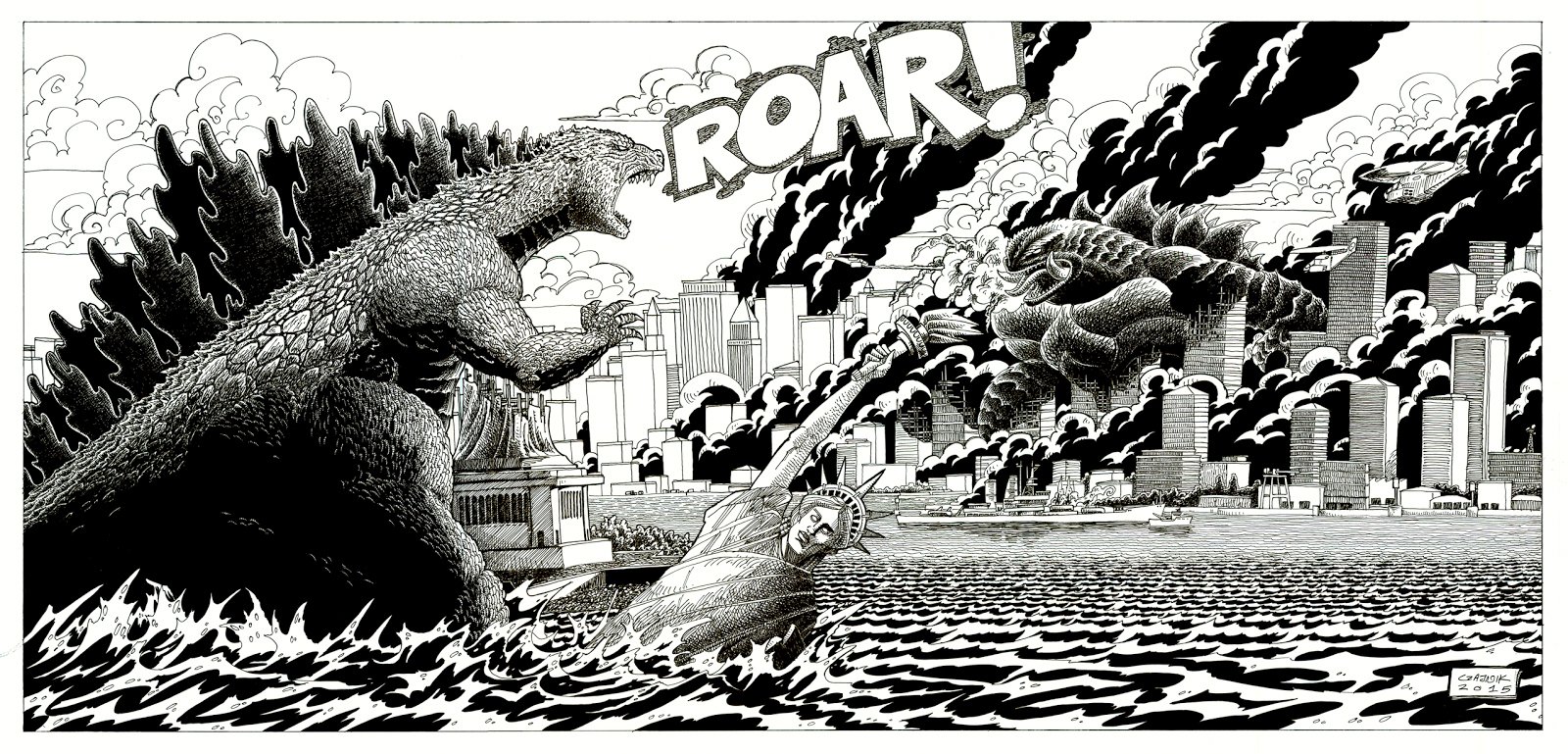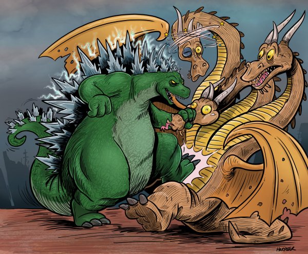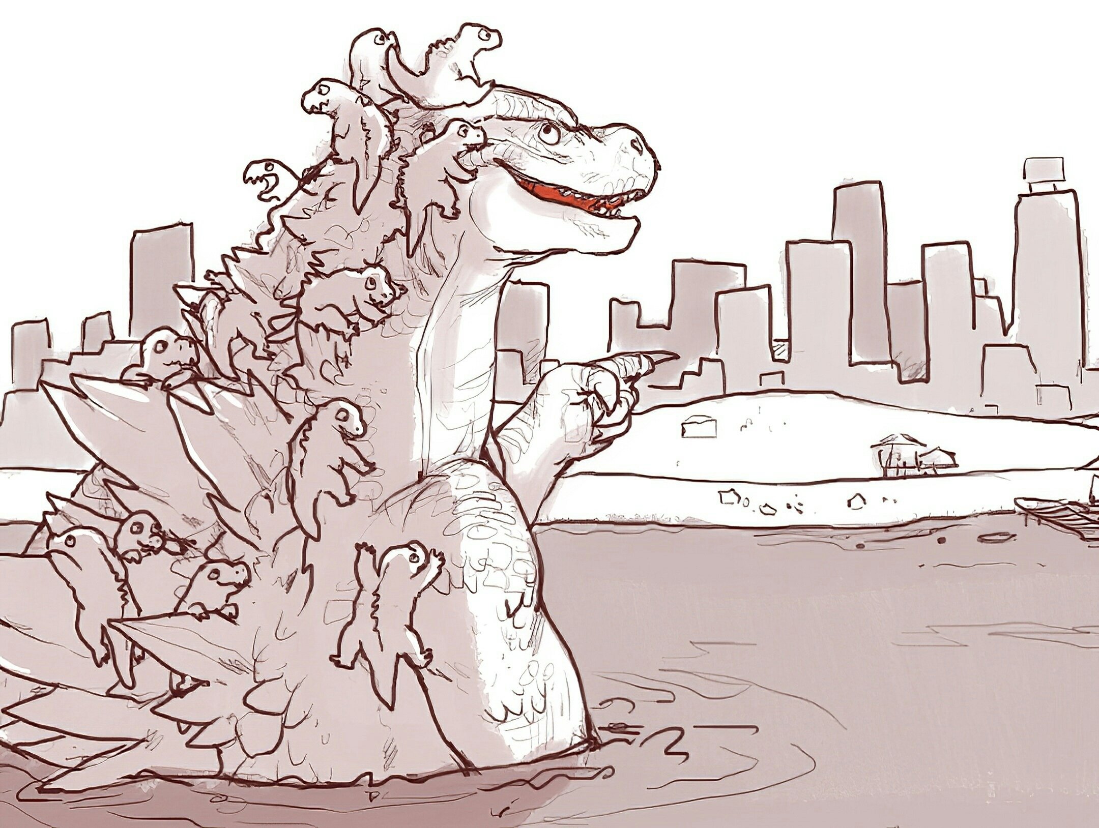 Годзилла карикатура - это увлекательный и оригинальный способ рассмешить и развлечь любителей монстров и японской культуры. В этой яркой и забавной карикатуре известный во всем мире гигантский ящер снова становится центром внимания, но уже в комическом исполнении. Отличительные черты Годзиллы сохранены: огромный размер, мощная фигура и характерное дыхание огнем. Однако, в новом образе Годзилла приобретает неожиданный шарм и смешной вид, что делает его еще более привлекательным для поклонников. Карикатура на Годзиллу - это отличный способ поднять настроение и добавить юмора в повседневную жизнь.