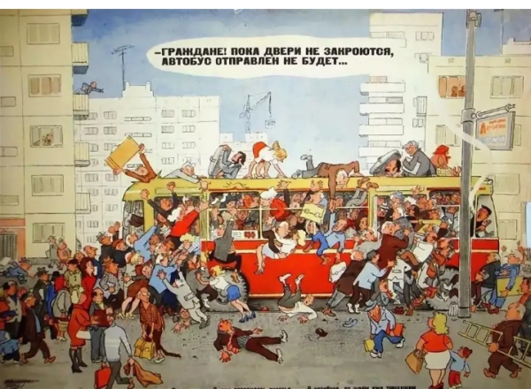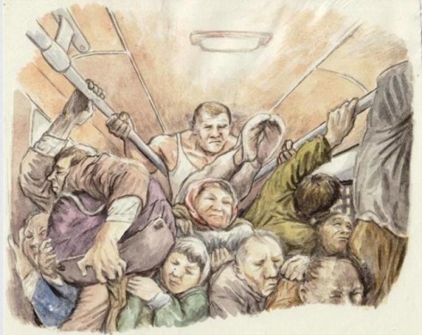 Карикатура "давка в автобусе" - это яркий и забавный образ, который передает ситуацию, когда в автобусе наступает момент, когда все пассажиры теснятся друг к другу. Иллюстрация показывает людей, застрявших в пробке, которые пытаются сжаться так близко друг к другу, чтобы вместить еще больше людей в ограниченном пространстве. Комические детали и выражения лиц создают комичное и забавное настроение, вызывая улыбку у зрителей. Карикатура "давка в автобусе" отлично передает хаос и суету, свойственные подобным ситуациям, и является отличным способом поднять настроение и вызвать улыбку у всех, кто ее видит.