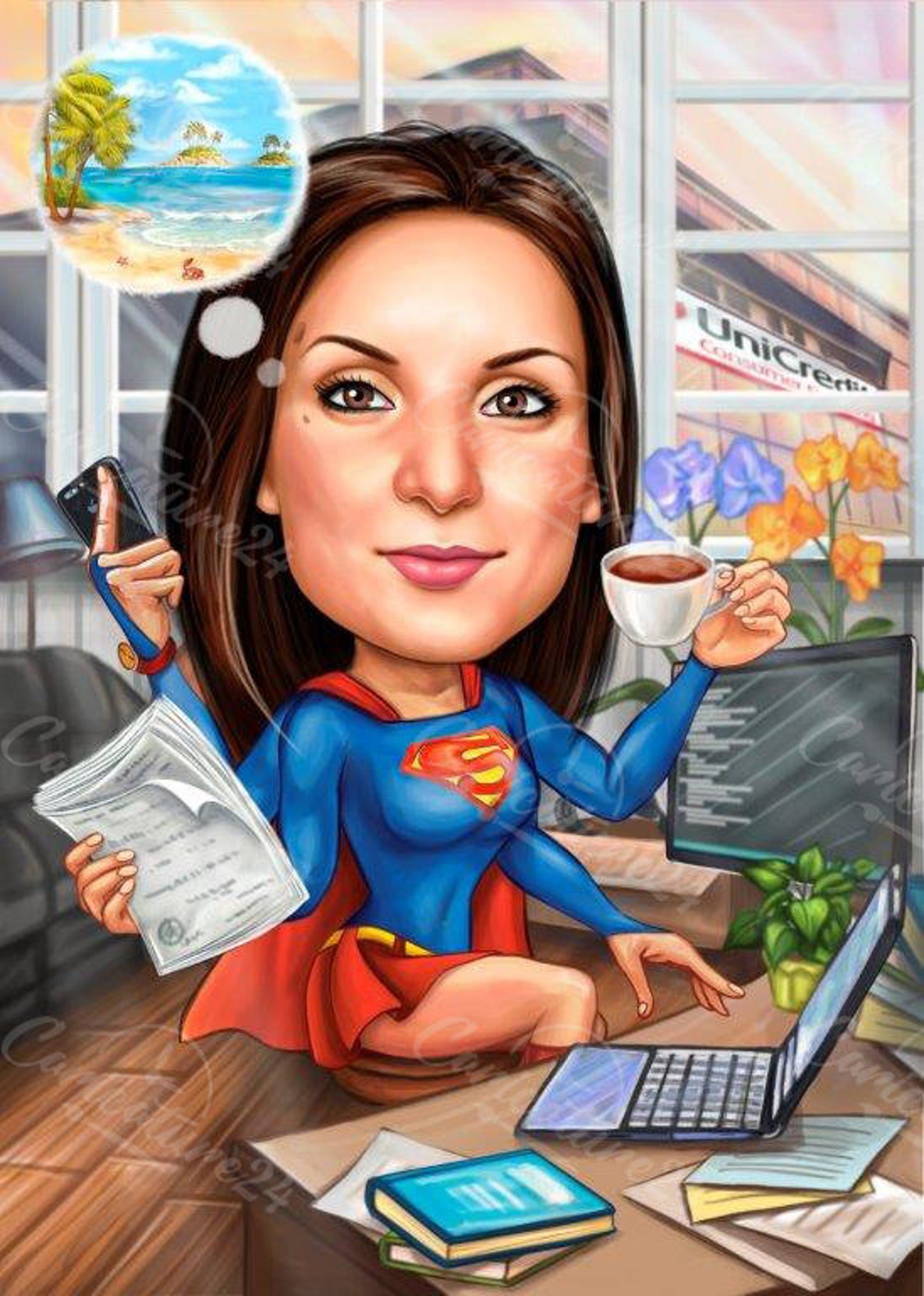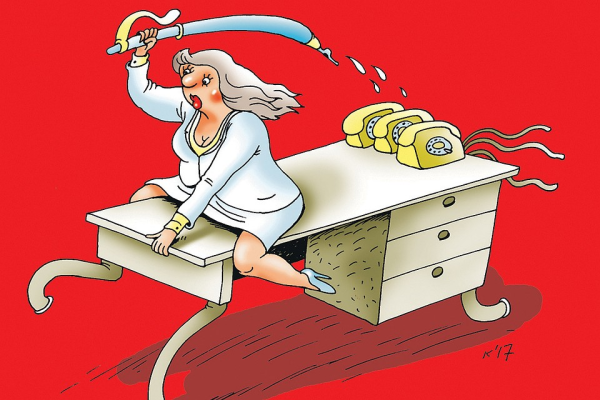 Карикатура "Секретарь" - это яркое и юмористическое изображение атмосферы офисной жизни, с фокусом на роли и особенностях секретаря. В этой карикатуре можно увидеть традиционные атрибуты такой профессии: переполненный рабочий стол с кучей документов, телефон, компьютер, календарь с многочисленными записями и навесной часами, которые всегда указывают время, когда секретарь должен быть занят другими делами. Юмористические детали и душевная выразительность лица создают комическую атмосферу, которая позволяет почувствовать насмешку и легкость в работе секретаря. Эта карикатура отлично передает некоторые стереотипы и смешные ситуации, с которыми секретари часто сталкиваются, и поднимает настроение своим непринужденным подходом к описанию офисной рутины.