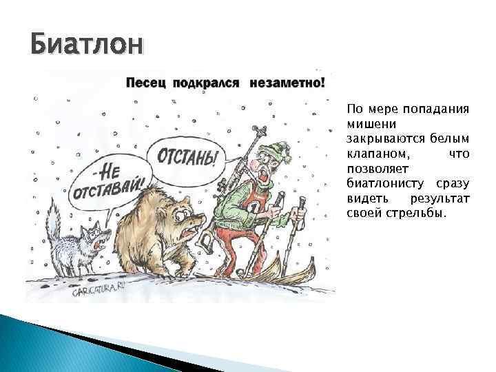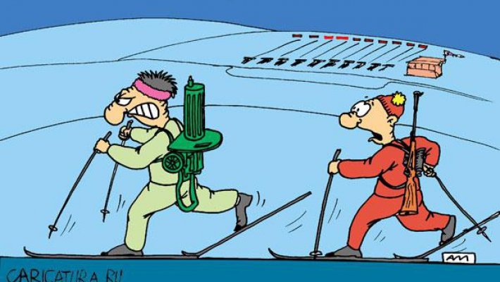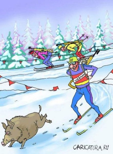 Карикатура на тему биатлона - это забавное и креативное изображение, которое передает особенности этого спортивного вида. Часто в таких рисунках можно увидеть смешные и необычные ситуации, связанные с биатлоном. Например, стрелок, промахнувшийся и попадающий в цель соседней мишени или бегущего биатлониста, который по случайности столкнулся с препятствием на трассе. Карикатуры на биатлон - это отличный способ добавить юмора и развлечения в мир серьезных спортивных соревнований и порадовать любителей этой дисциплины.