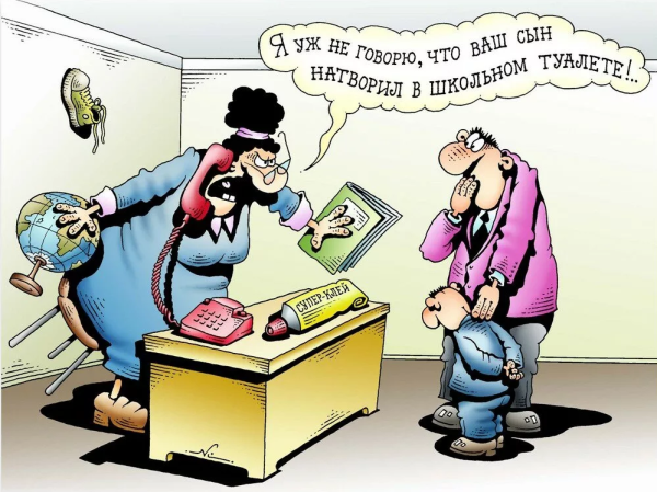Карикатура "Родители и школа" является ярким и юмористическим отражением взаимоотношений между родителями и учебным заведением. На рисунке можно увидеть типичные сцены из повседневной жизни, где родители выступают в роли активных участников школьных дел. Они приходят на родительские собрания, общаются с учителями и стараются быть в курсе успехов своих детей. В то же время, школа также получает свою долю карикатурного изображения, показывая некоторые особенности образовательного процесса. Эта карикатура является забавным способом насмешки над некоторыми стереотипами и доставляет улыбку всем, кто знаком с такой ситуацией.