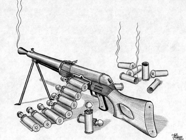 Карикатура "пулеметчик" - это яркое и забавное изображение солдата, вооруженного пулеметом. Этот комический рисунок наполнен юмором и сатирой, которые помогают передать особенности и нюансы профессии пулеметчика. Карикатура позволяет насмешливо выразить какие-то особенности человека или темы, которые связаны с военной службой и боевыми действиями. Она может вызвать улыбку и заставить задуматься о реальных проблемах и событиях, связанных с военной сферой. Карикатуры пулеметчиков часто используются в качестве иллюстраций для военных журналов, книг, а также в интернет-мемах и социальных сетях для передачи определенного послания или создания комического эффекта.