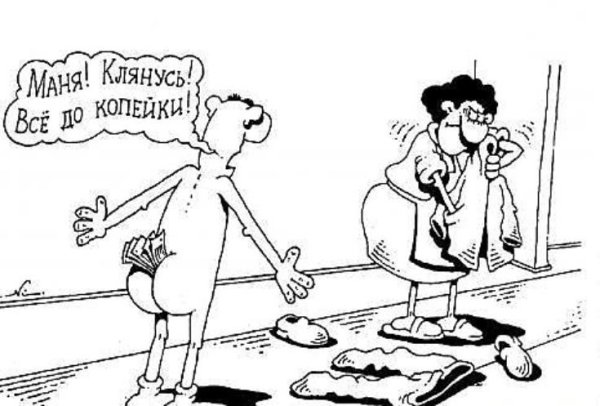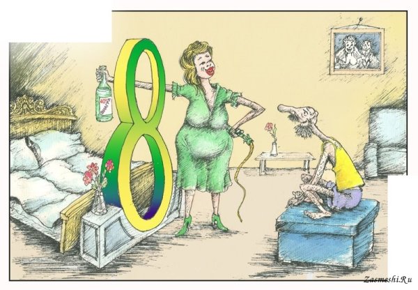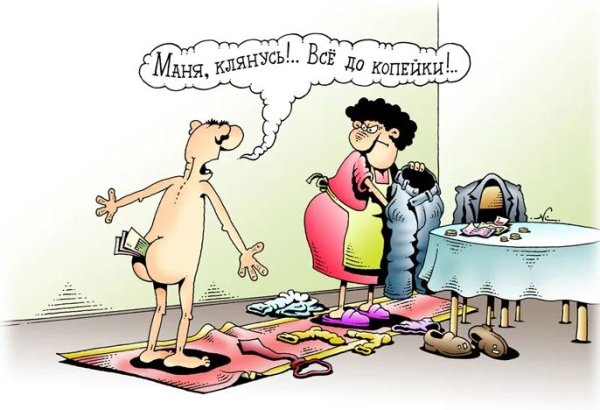 Карикатура "Жена и заначка" - это яркое и юмористическое изображение сцены, которая неловко раскрывает отношения между супругами. На рисунке можно увидеть жену, которая обнаруживает место, где её муж скрыл деньги или ценности. Возможно, она выражает своё недовольство или чувствует себя обманутой. Эта карикатура игриво подчёркивает различия взглядов и поведения между супругами, создавая комическую ситуацию, которая может вызывать улыбку или даже хохот у зрителей. Она является оригинальным и забавным способом передать некоторые типичные семейные ситуации и вызвать эмоциональную реакцию у людей, которые сами сталкивались с подобными ситуациями.
