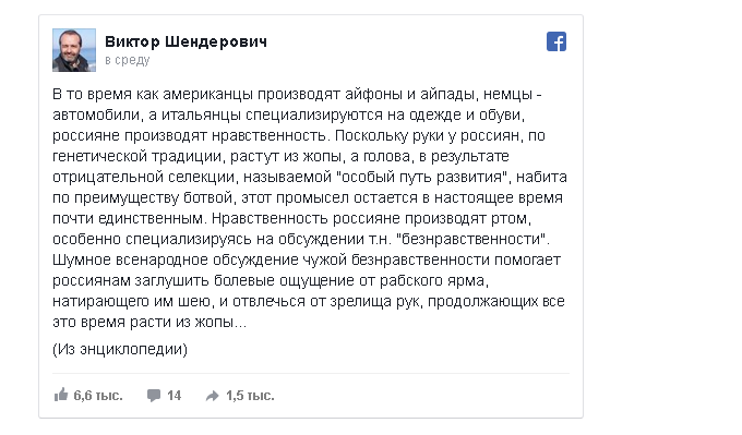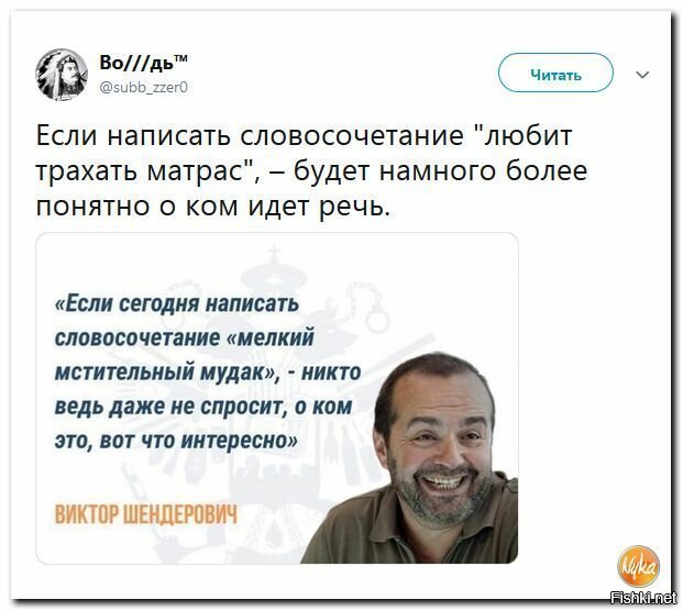 Шендерович – известный российский сатирик, писатель и карикатурист. Его карикатуры являются уникальным сочетанием юмора, острого наблюдения и сарказма. Они отражают актуальные политические и социальные темы, подвергая критике различные аспекты жизни в современном обществе. Каждая карикатура Шендеровича – это настоящая миниатюра, которая привлекает внимание своей пронзительной иронией и точности передачи портретируемых персонажей. Как изображая политиков, так и обычных людей, Шендерович не боится раскрывать их слабости и гипокризию, вызывая у зрителей смех и задумчивость. В его работах сочетается талантливое художественное исполнение и остроумная концепция, делая его карикатуры поистине уникальными и запоминающимися.