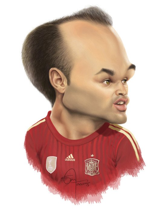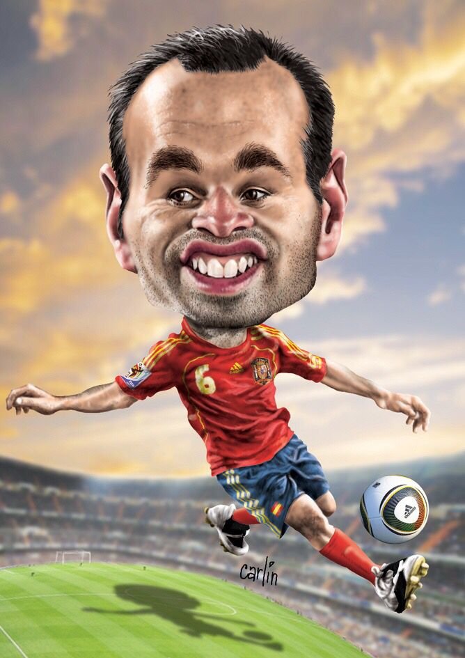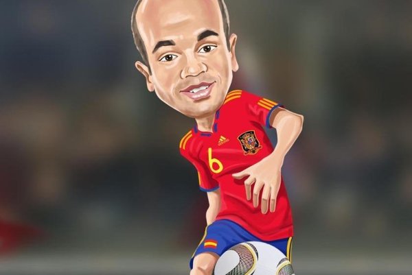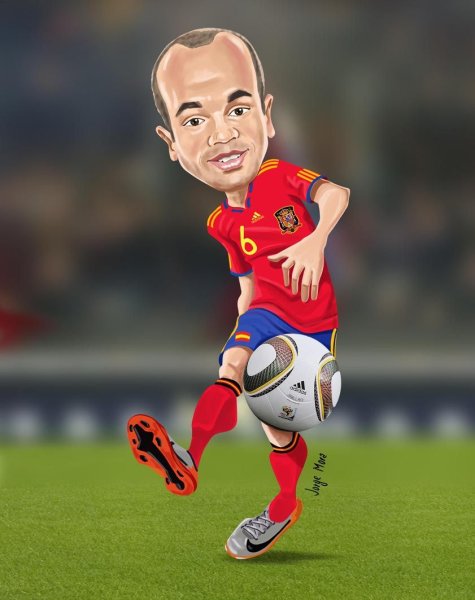 Иньеста - легендарный испанский футболист и один из самых талантливых игроков своего поколения. Его футбольная карьера была украшена множеством трофеев и достижений, включая чемпионаты мира и Европы с национальной сборной Испании, а также несколько Лиги чемпионов с его долгосрочным клубом - "Барселоной". Кроме своих незаурядных спортивных успехов, Иньеста также прославился своим неподражаемым стилем игры и клубной преданностью. Он всегда был известен своим профессионализмом, интеллектуальным подходом к игре и удивительными навыками на поле. В среде футбольных болельщиков он завоевал огромную популярность и признание, став объектом восхищения и источником вдохновения для многих. Карикатура посвященная Иньесте отлично передает его характерные черты и яркий образ, позволяя поклонникам насладиться его талантом и чувством юмора.
