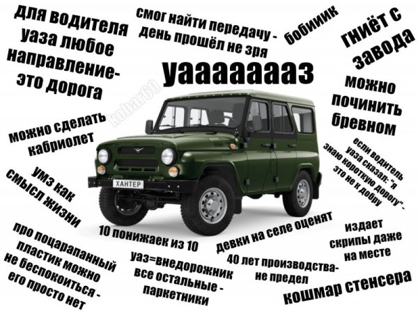 Карикатура "УАЗ" - это яркое произведение искусства, которое с легкостью захватывает внимание зрителей. Она нарисована с юмором и иронией, передавая особенности и неповторимый стиль автомобилей УАЗ. В этой карикатуре можно увидеть их характерные черты, такие как массивность, прочность и надежность, но при этом с щепоткой самоиронии. Каждая деталь изображения тщательно продумана, чтобы максимально точно передать уникальность и узнаваемость бренда УАЗ. Карикатура "УАЗ" - это не только забавная картинка, но и своеобразный гимн автомобилю, который заслужил множество почитателей своей непревзойденной надежностью и возможностями.