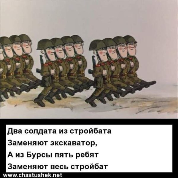 Карикатура "Стройбат" - это веселая и забавная иллюстрация, которая изображает ситуации из строительной сферы. На рисунке можно увидеть карикатурных рабочих, инженеров и даже заказчиков, которые сталкиваются с различными комическими ситуациями и нелепыми обстоятельствами на строительном объекте. Яркие цвета, выразительные лица и элементы декора делают эту карикатуру привлекательной и запоминающейся. Карикатура "Стройбат" идеально подходит для использования в рекламных материалах строительных компаний, журналах и сайтах, посвященных строительству или просто для досуга и хорошего настроения.
