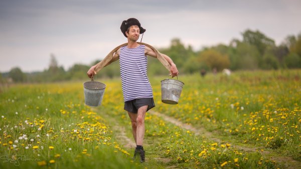 Веселая и забавная карикатура "Баба с ведрами" порадует любителей юмора и оригинальных изображений. На рисунке изображена старушка, шагающая с тремя огромными ведрами, которые она несет на своих плечах. Ее выражение лица полно энергии и решительности, как будто ничего не может остановить ее в этом задуманном деле. Карикатура играет с противоречиями и вызывает улыбку, показывая, что даже самые необычные занятия и действия могут приносить радость и удовольствие. Она подходит для использования в различных смешных и креативных проектах, таких как рекламные баннеры, журнальные иллюстрации или просто для развлечения и поднятия настроения.