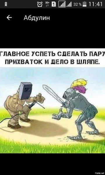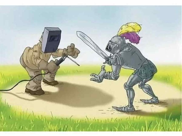 Хотите насладиться веселой и занимательной карикатурой? Тогда вам точно понравится наша новая работа "Сварщик против рыцаря"! В этой комической иллюстрации встречаются два совершенно несоединимых мира - мир сварки и мир средневековых рыцарей. Вы увидите, как смешно выглядит конфликт между самобытным сварщиком, в шлеме и защитной одежде, и гордым рыцарем в своей броне. Их нелепая и неожиданная стычка обещает стать настоящим источником хорошего настроения. Наслаждайтесь уникальной комбинацией юмора и изобразительности в нашей карикатуре "Сварщик против рыцаря"!