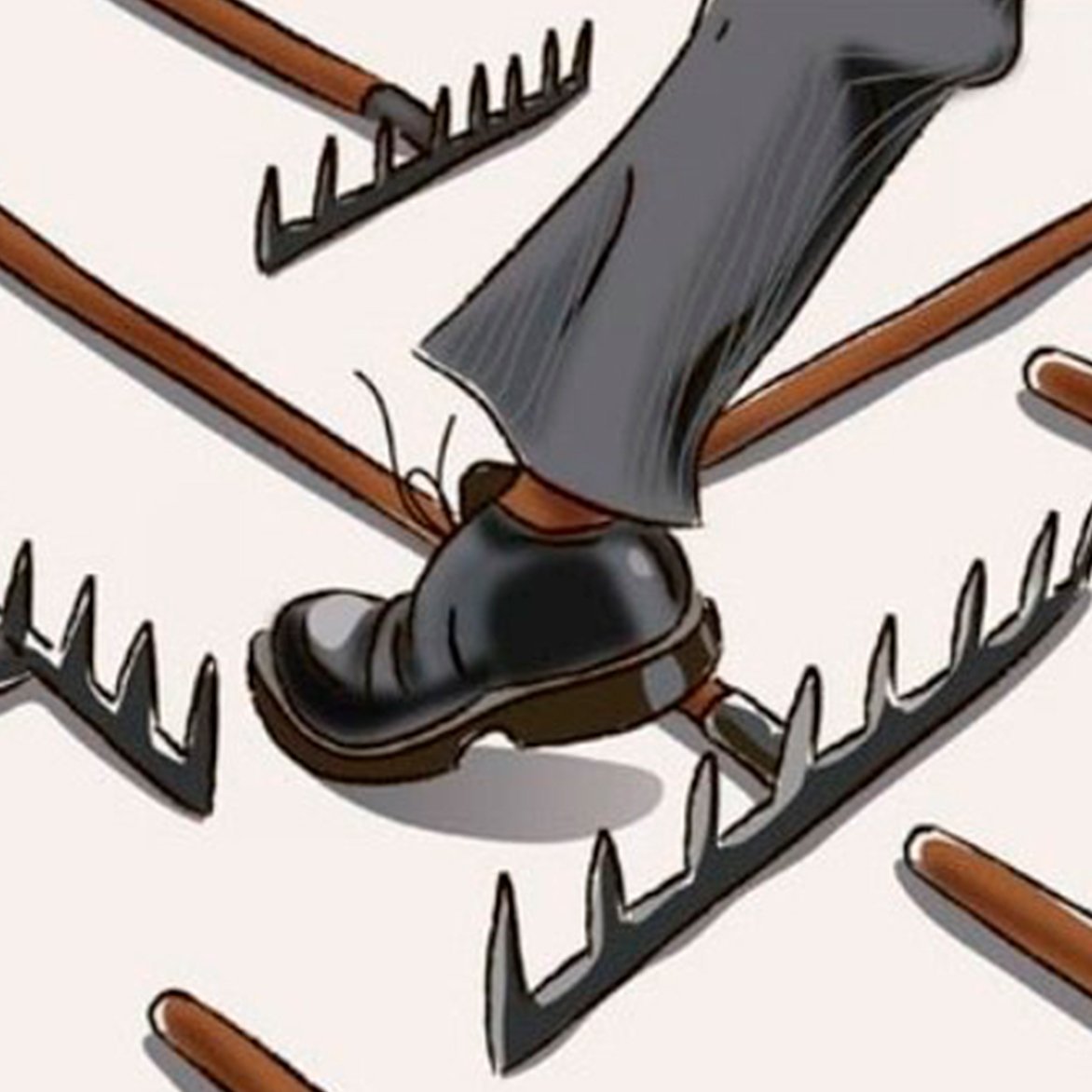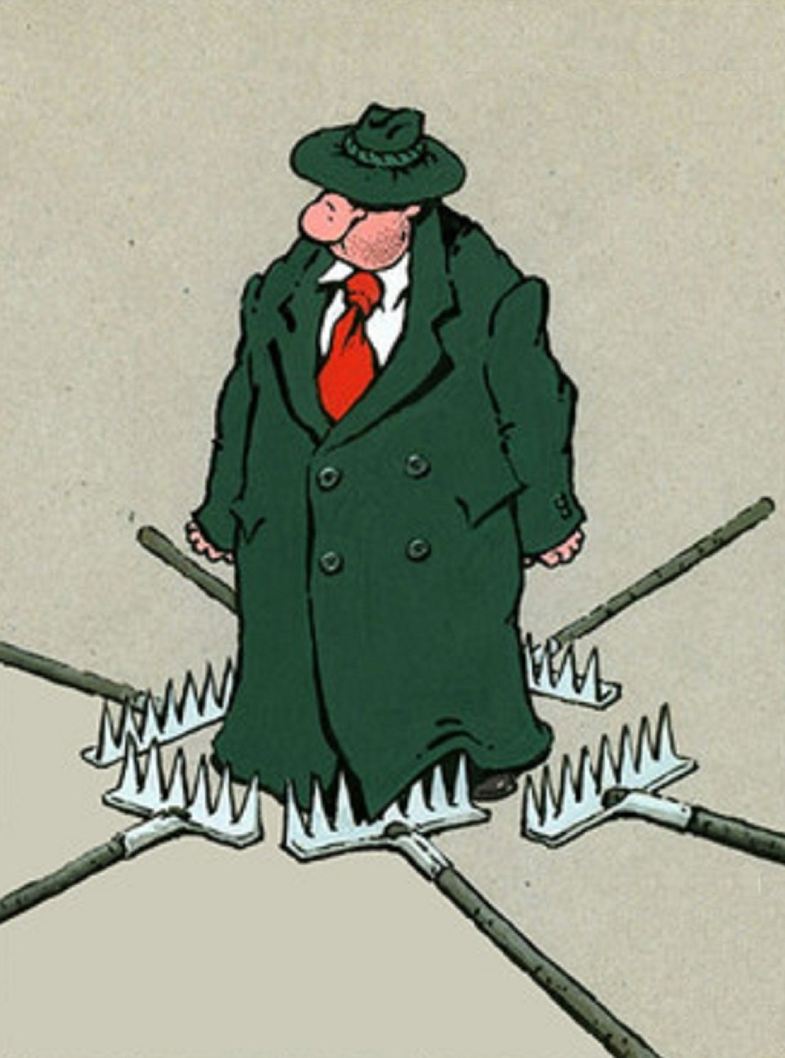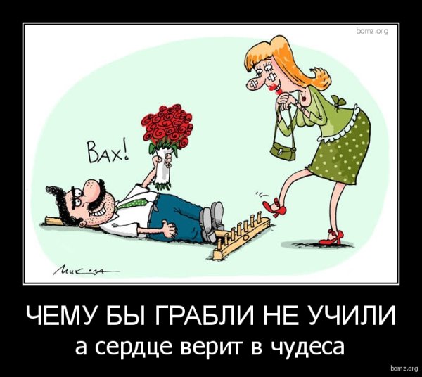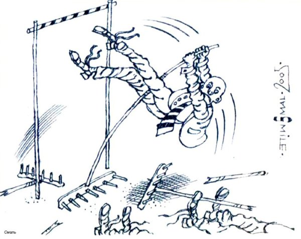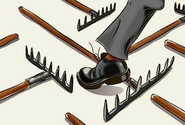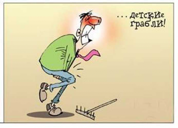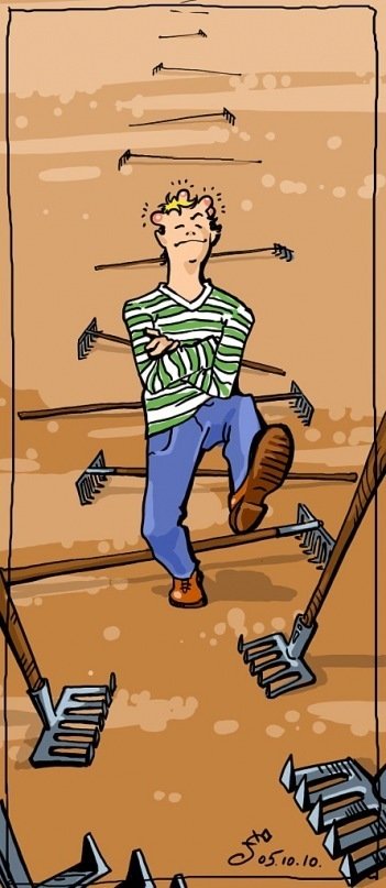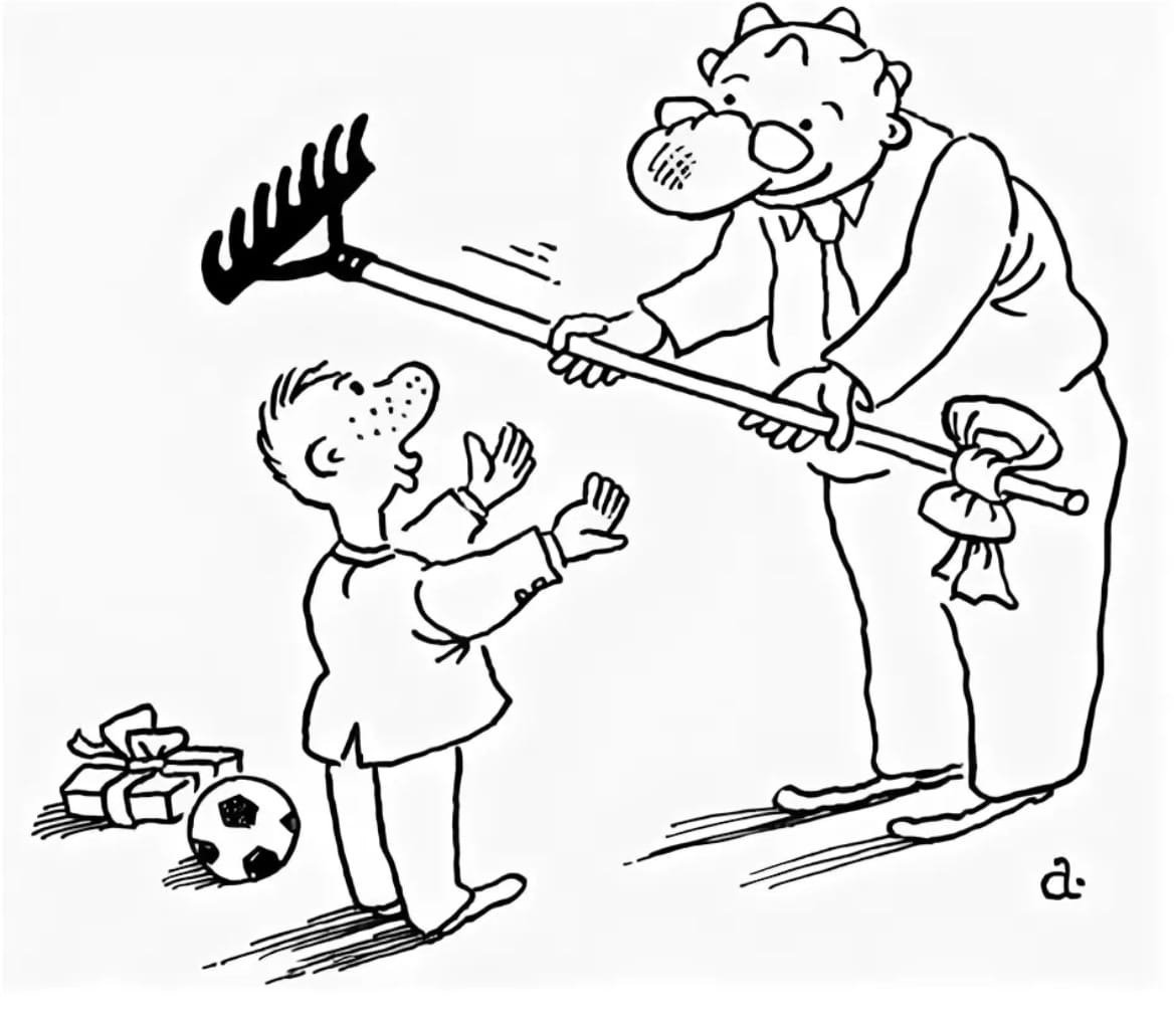 Карикатура "Мужик наступает на грабли" - это забавное изображение, которое демонстрирует классическую ситуацию, когда человек делает одну и ту же ошибку снова и снова. На рисунке изображен мужчина, который неосторожно наступает на грабли, а затем получает удар по лицу. Эта карикатура наглядно иронизирует над людьми, которые не учатся на своих ошибках и продолжают повторять их. Она также может служить напоминанием всем нам о важности проявлять более прозорливости и предусмотрительности в своих поступках.