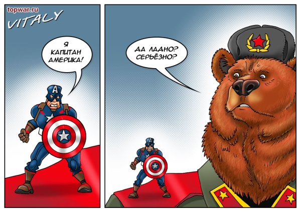 Карикатуры "русский медведь и американский орел" являются забавными и популярными среди любителей юмора и политической сатиры. В этих карикатурах изображены две национальные символы России и США - медведь и орел, соответственно. В художественной интерпретации авторы часто выделяют особенности и стереотипы этих двух стран, создавая комические сцены и ситуации. Часто в карикатурах можно увидеть медведя, выпивающего водку и играющего на балалайке, в то время как орел мечется над ним, пытаясь сохранить серьезность своей фигуры. Эти карикатуры не только развлекают, но и отражают определенные политические и культурные аспекты отношений между Россией и США. Они стали своеобразным явлением в интернете, где пользователи с удовольствием делятся этими забавными и немного провокационными иллюстрациями.