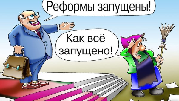 Карикатура "Реформа" - это яркое художественное изображение, которое иронично отражает процесс проведения реформ в различных сферах жизни. Она позволяет нам с улыбкой на лице посмотреть на сложные изменения и преобразования, которые так часто происходят в обществе. Карикатуры "Реформа" нередко содержат смешные и карикатурные изображения политиков, бизнесменов или даже обычных людей, которые становятся главными героями этих изменений. Они вызывают улыбку и задумывают о том, какие последствия могут иметь эти реформы на нашу повседневную жизнь. Карикатуры "Реформа" являются не только источником юмора, но и способом выразить свое мнение о текущих социально-политических процессах.