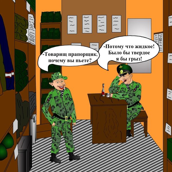 Веселая и забавная карикатура "Прапорщик" представляет собой яркое и юморное изображение этого военного звания. На рисунке мы видим прапорщика в типичной форме, с характерными атрибутами - шевронами на рукавах и эполетами на плечах. Его выразительное лицо, полное улыбки и поднятый указательный палец создают комический эффект и вызывают улыбку у зрителя. Карикатура передает не только военно-служебную атмосферу, но и некую игривость, играющую на противоречии между строгостью ранга и своеобразным чувством юмора. Это отличное художественное произведение, которое способно развеселить и поднять настроение всем любителям карикатур и военных шуток.