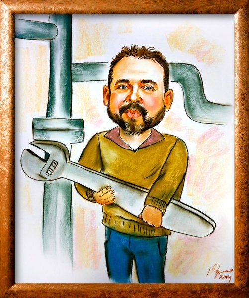 Карикатура "слесарь" - это яркое и забавное изображение профессионала своего дела. На рисунке изображен слесарь в рабочей одежде, с инструментами в руках и концентрированным выражением лица. Эта карикатура передает не только основные черты внешности и образа работы слесаря, но и подчеркивает его опытность и мастерство. Благодаря преувеличенным деталям и комическим элементам, такая карикатура вызывает улыбку и создает позитивное настроение. Она может быть отличным подарком для слесаря или любого, кто связан с этой профессией, а также станет интересным украшением интерьера или предметом коллекции для любителей карикатур.