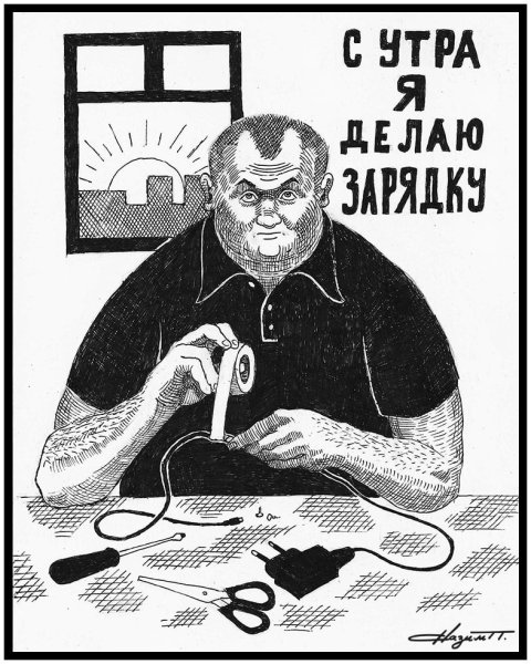 Карикатура "зарядка" - это уникальное и забавное изображение, которое передает настроение и смешные моменты, связанные с темой физической активности и фитнеса. В этой карикатуре великолепно переданы яркие и выразительные персонажи, которые занимаются зарядкой. Они демонстрируют различные позы и движения, создавая комический эффект. Карикатура "зарядка" не только развлекает и вызывает улыбку у зрителей, но и напоминает о важности здорового образа жизни и регулярных физических упражнений. Эта карикатура отличный выбор для интересного и оригинального декора в спортивных клубах, фитнес-студиях или просто для любителей юмористических картинок.