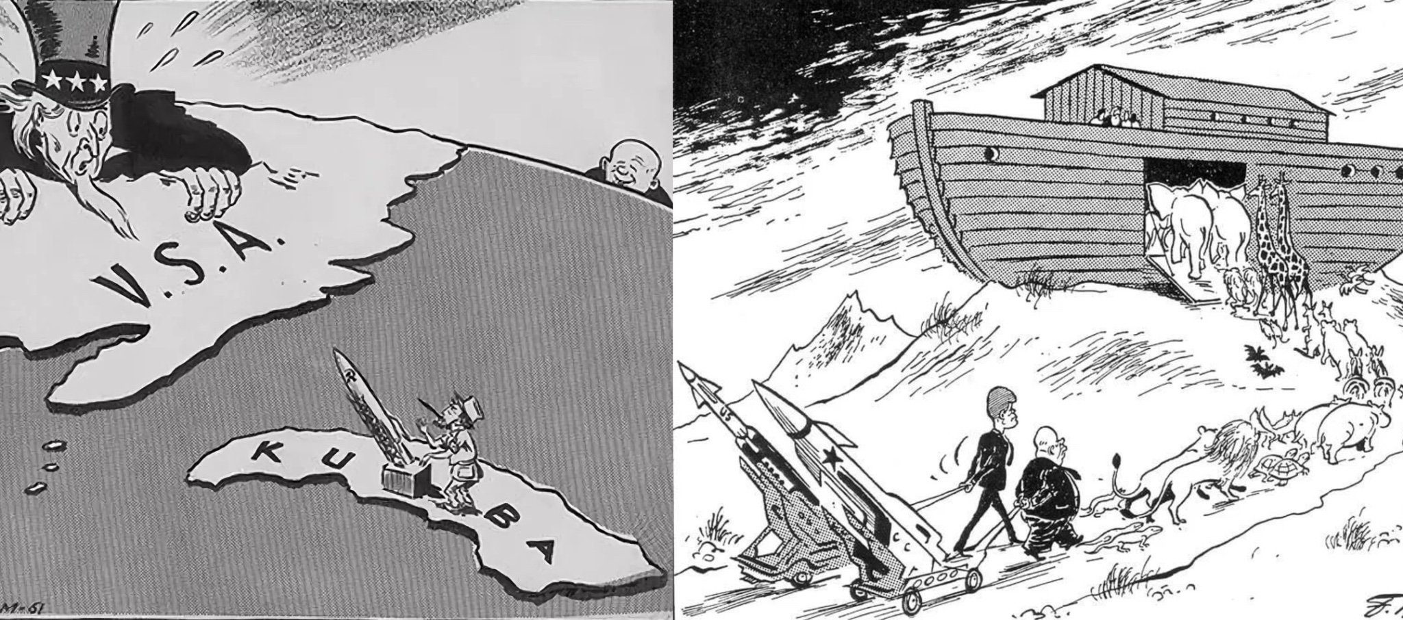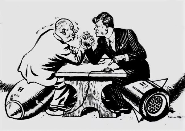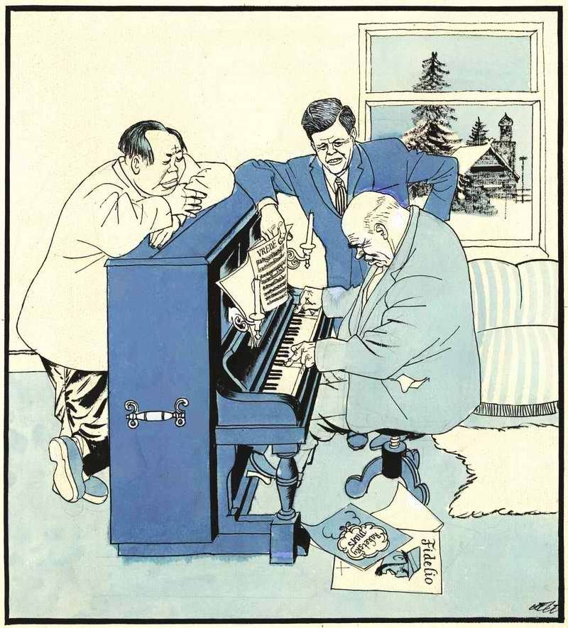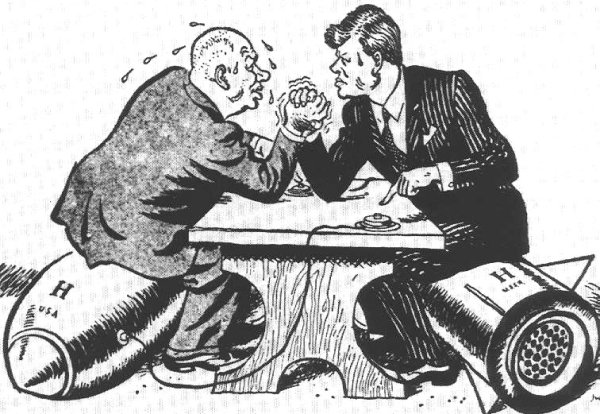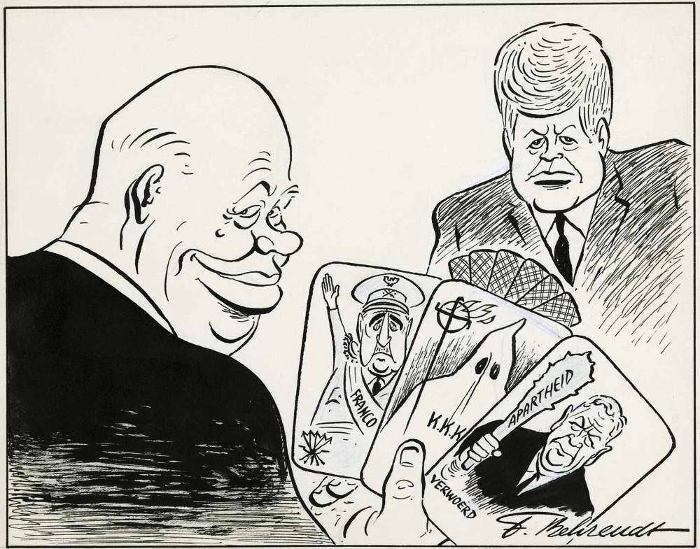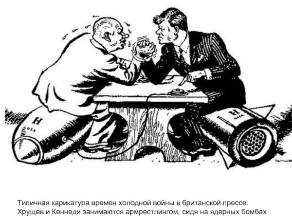 Великий лидер Советского Союза Никита Хрущев и президент США Джон Ф. Кеннеди стали объектом широкой популярности в период Холодной войны. Их противостояние и различия между двумя сверхдержавами часто были изображены в карикатурах. Комические рисунки показывали Хрущева в его знаменитой туфле, используемой им в ООН для подчеркивания своего несогласия с политикой Соединенных Штатов, а также Кеннеди в его привлекательной внешности и харизме. Карикатуры Хрущева и Кеннеди были не только юмористическими отражениями двух знаменитых фигур, но и символами напряженных отношений между СССР и США.