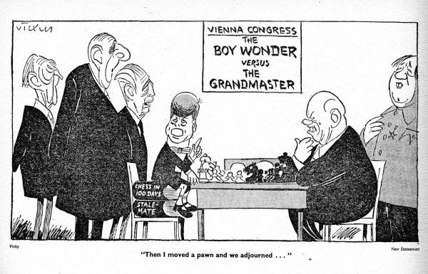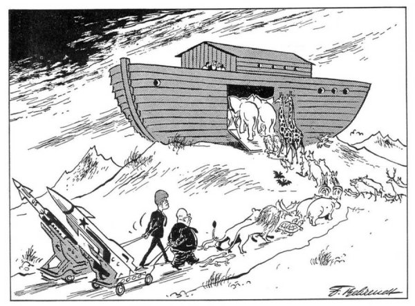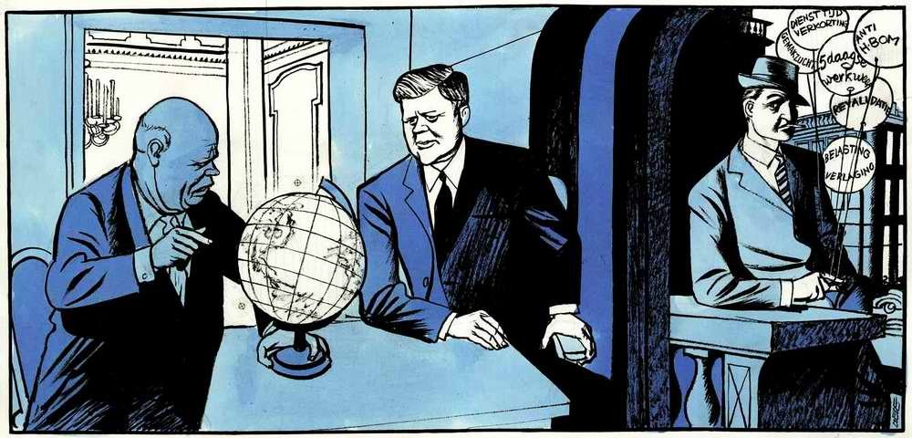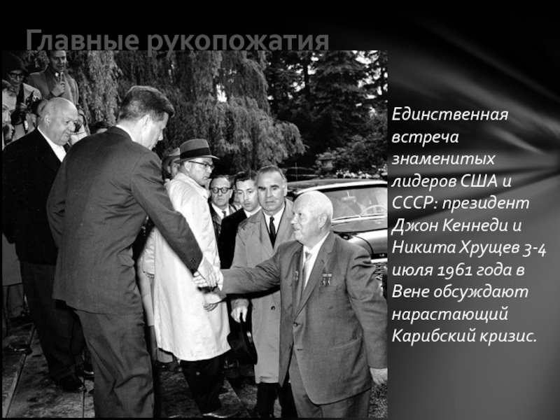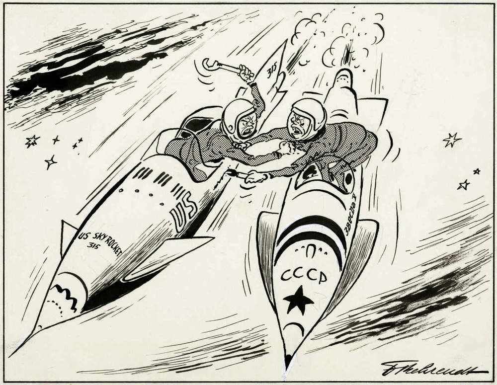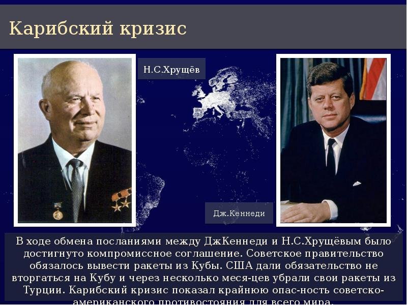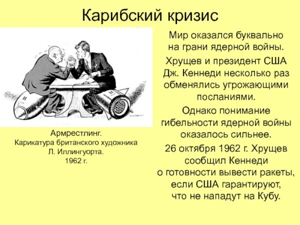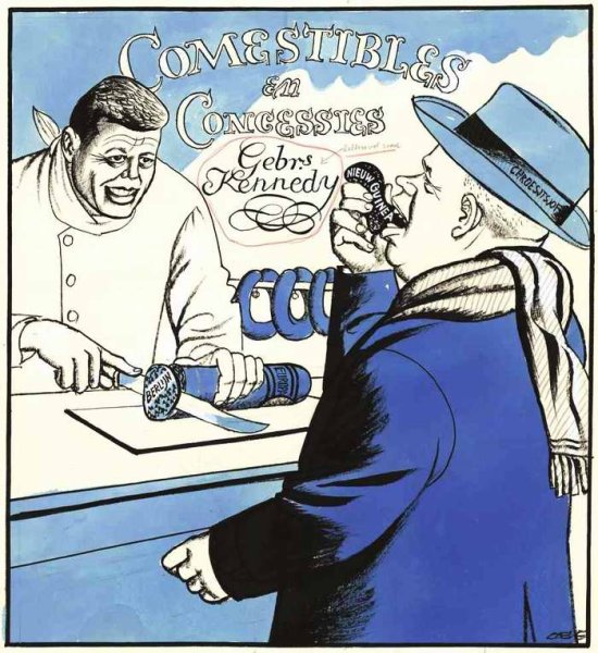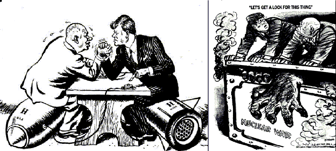 Великий лидер Советского Союза Никита Хрущев и президент США Джон Ф. Кеннеди стали объектом широкой популярности в период Холодной войны. Их противостояние и различия между двумя сверхдержавами часто были изображены в карикатурах. Комические рисунки показывали Хрущева в его знаменитой туфле, используемой им в ООН для подчеркивания своего несогласия с политикой Соединенных Штатов, а также Кеннеди в его привлекательной внешности и харизме. Карикатуры Хрущева и Кеннеди были не только юмористическими отражениями двух знаменитых фигур, но и символами напряженных отношений между СССР и США.