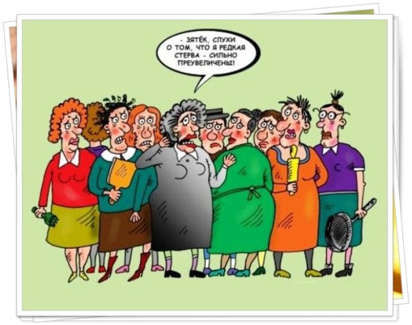 Злая теща - это карикатурный образ, который символизирует сложные отношения между невесткой и ее свекровью. Возможно, каждый человек сталкивался с подобной ситуацией или слышал о таких историях. Карикатура на злую тещу может изображать ее с ярко выраженными чертами - строгим лицом, вздернутым носом, острыми углами глаз и пышными бровями, что подчеркивает ее недовольство или негативное отношение к невестке. Такая карикатура может быть использована как юмористическая нотка в различных ситуациях, создавая комический эффект и вызывая улыбку.