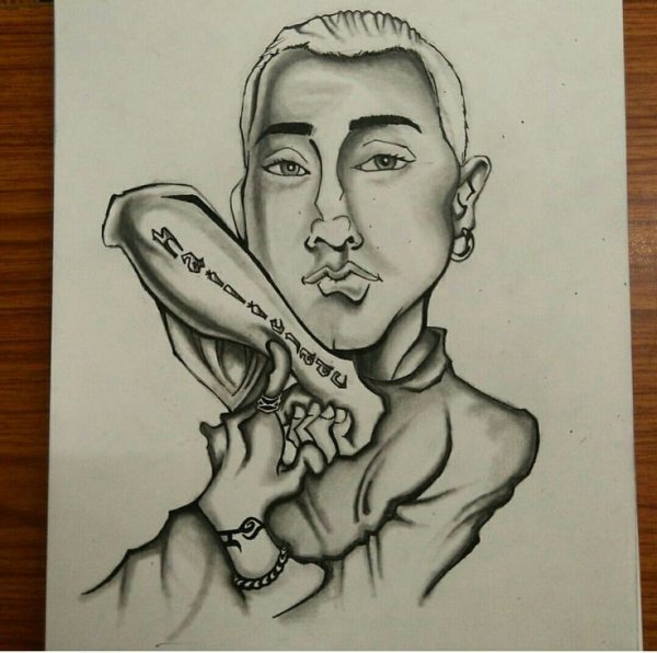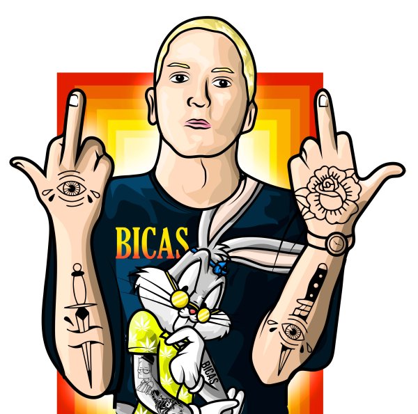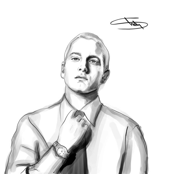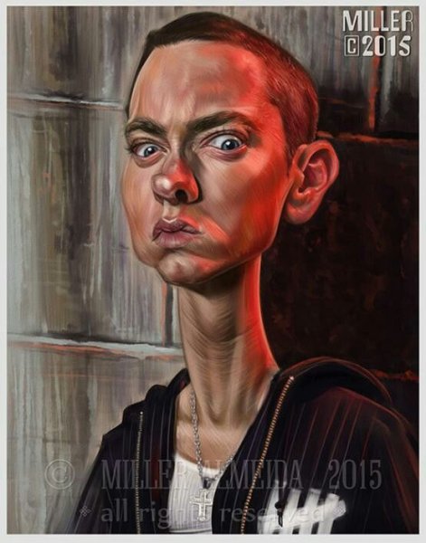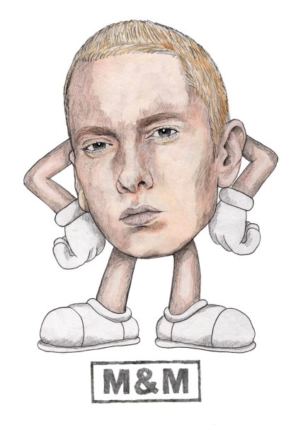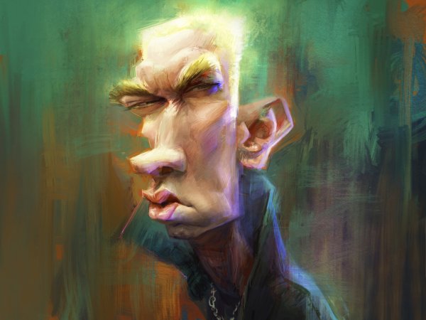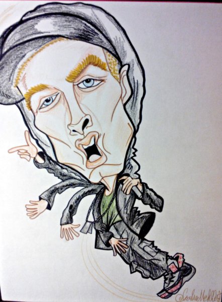 Карикатура Эминема - это художественное изображение популярного американского рэпера и музыкальной легенды, Маршалла Мэтерса III, более известного как Эминем. В этой карикатуре можно увидеть его особенности внешности, такие как острые черты лица, незабываемые голубые глаза и известные бело-блондинистые волосы. Эта карикатура, возможно, отражает его знаменитый выражение лица, которое он часто использует на сцене или в своих видеоклипах. Карикатура Эминема может быть ярким и оригинальным способом показать его талант и стиль, привлекая внимание фанатов и любителей его музыки.