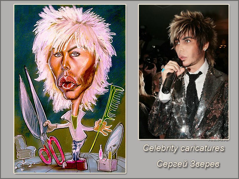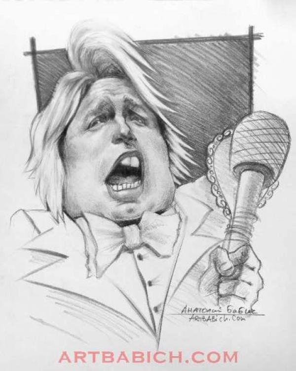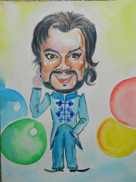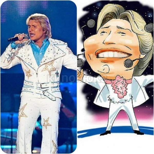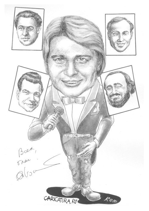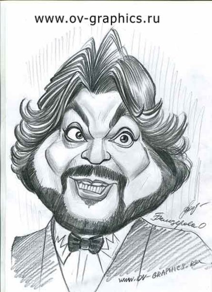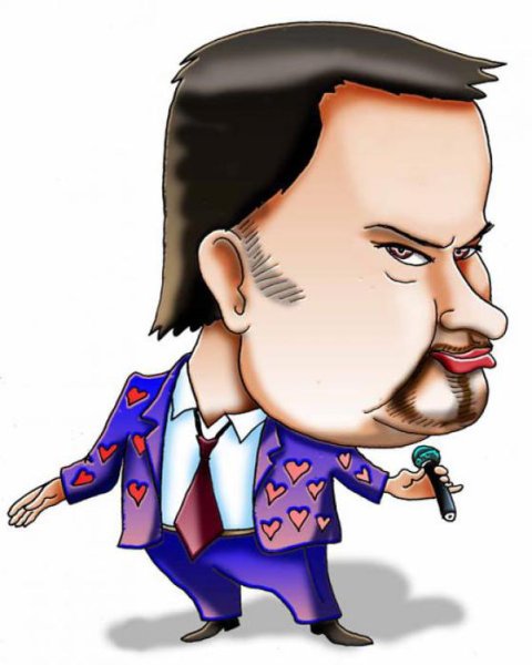 Эта карикатура изображает российского певца и актера Николая Баскова. В ней художник передает особенности внешности и стиля артиста с помощью юмористических элементов. Размерные черты лица, характерная прическа, а также знаковые атрибуты, такие как микрофон или бриллиантовое украшение, подчеркивают его известность и популярность. Карикатура может быть использована для различных целей - от создания комического эффекта до выражения определенного мнения о данной личности.