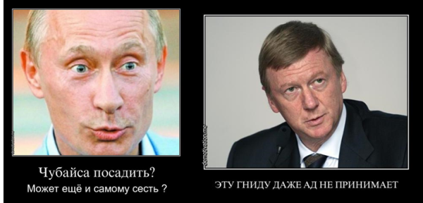 Карикатура на Чубайса - это забавное и остроумное изображение известного российского предпринимателя и политика Анатолия Чубайса. Возможно, карикатура подчеркивает особенности его внешности или выражает некоторые его характеристики и действия в сатирической форме. Такие карикатуры часто используются для передачи политических и социальных комментариев, а также для вызова улыбок и размышлений у зрителей. Они позволяют нам по-новому взглянуть на известную личность и может быть использованы в различных контекстах - от печатных изданий до интернет-мемов. Карикатуры на Чубайса могут иметь различные стили и подходы, но их цель всегда одна - вызвать эмоции и заставить задуматься о том, что происходит вокруг нас.
