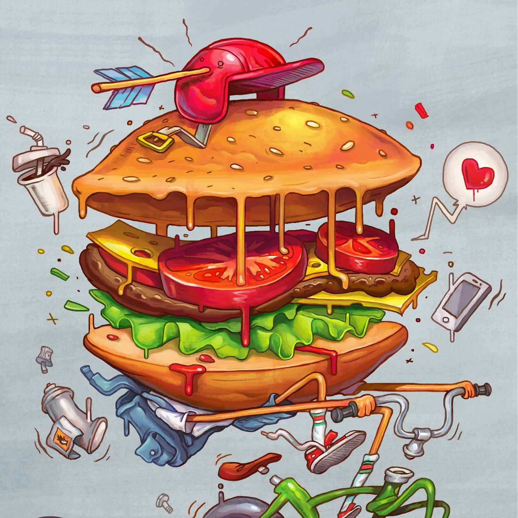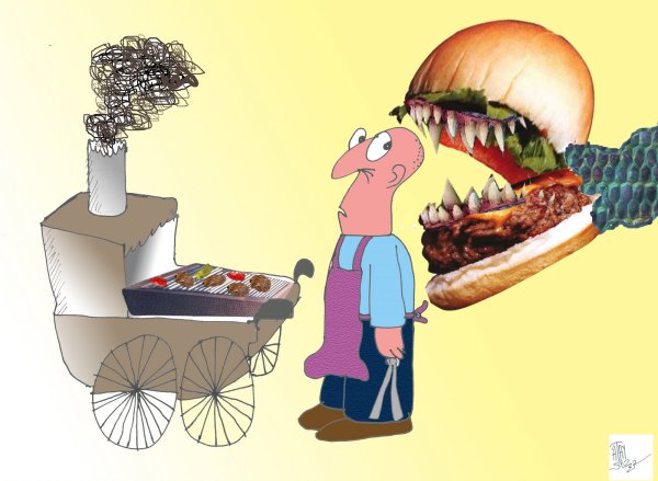 Карикатура бургер - это уникальное и оригинальное изображение бургера, выполненное в комическом стиле. Она является своего рода ироничным отражением популярности и всеобщей любви к гамбургерам. Карикатурный бургер часто выделяется яркими цветами, преувеличенными формами и экспрессивными деталями. Такая картина может служить не только декоративным элементом для интерьера ресторана или кафе, но и вызывать улыбку у зрителей, стимулируя их аппетит и настроение. Карикатура бургер - это не только визуальное удовольствие, но и способ подчеркнуть юмор и игривость данного блюда.