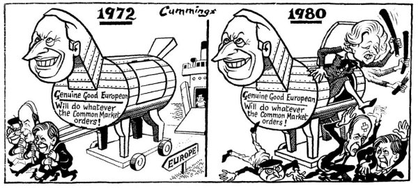 Маргарет Тэтчер, известная как Железная леди, была британской политической деятельностью и первой женщиной-премьер-министром Великобритании. Она была изображена во множестве карикатур, которые часто подчеркивали ее сильный характер и неуклонность в достижении своих целей. Карикатуры Маргарет Тэтчер часто отражали ее выразительные черты лица, такие как острые черты и решительный взгляд, а также символизировали ее политическую власть и авторитет. Эти карикатуры часто использовались для комментирования ее политических решений и привлечения внимания к различным аспектам ее правления. В целом, карикатуры Маргарет Тэтчер представляли ее как одну из самых ярких и контроверсиальных фигур в британской политике XX века.