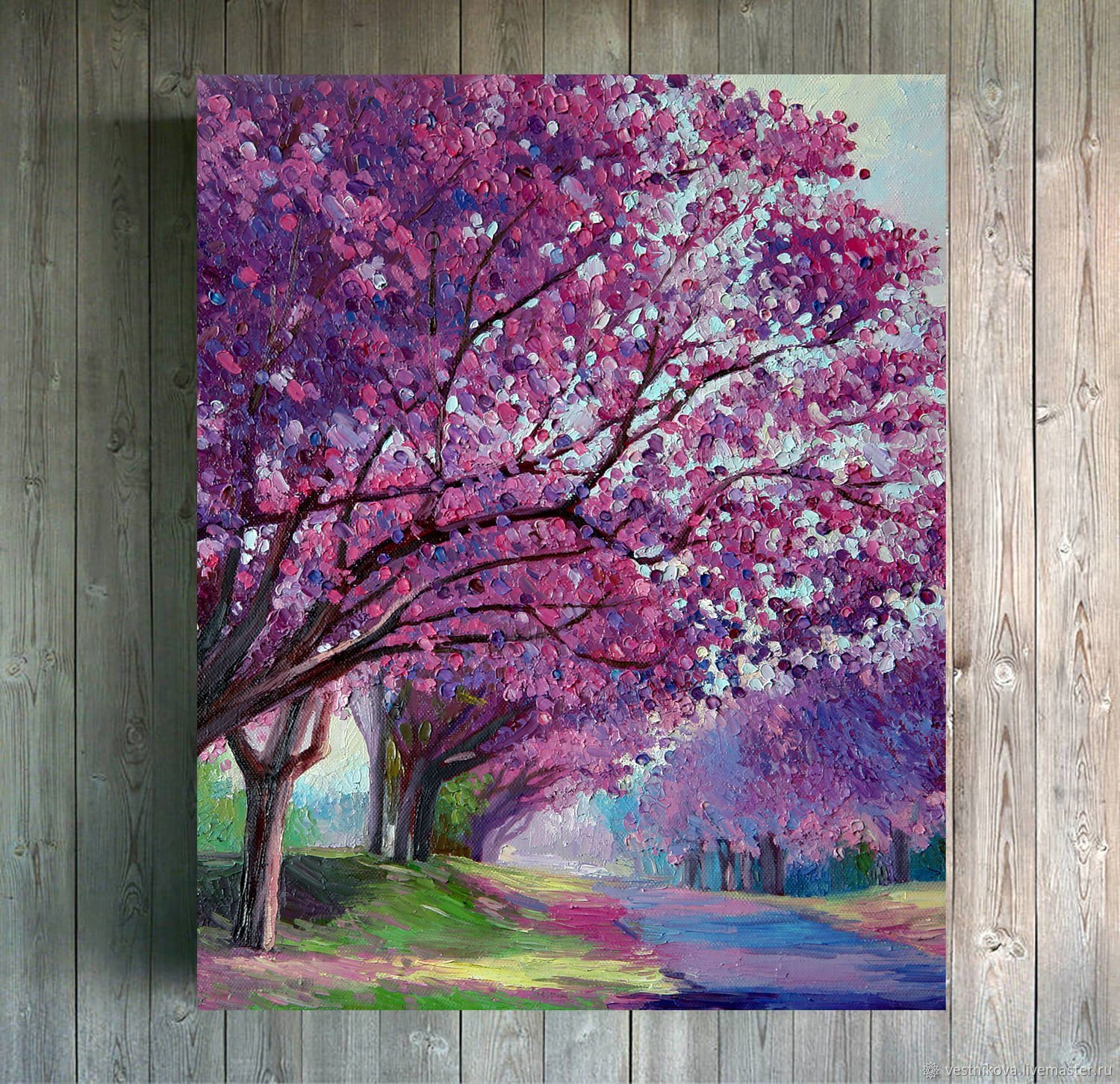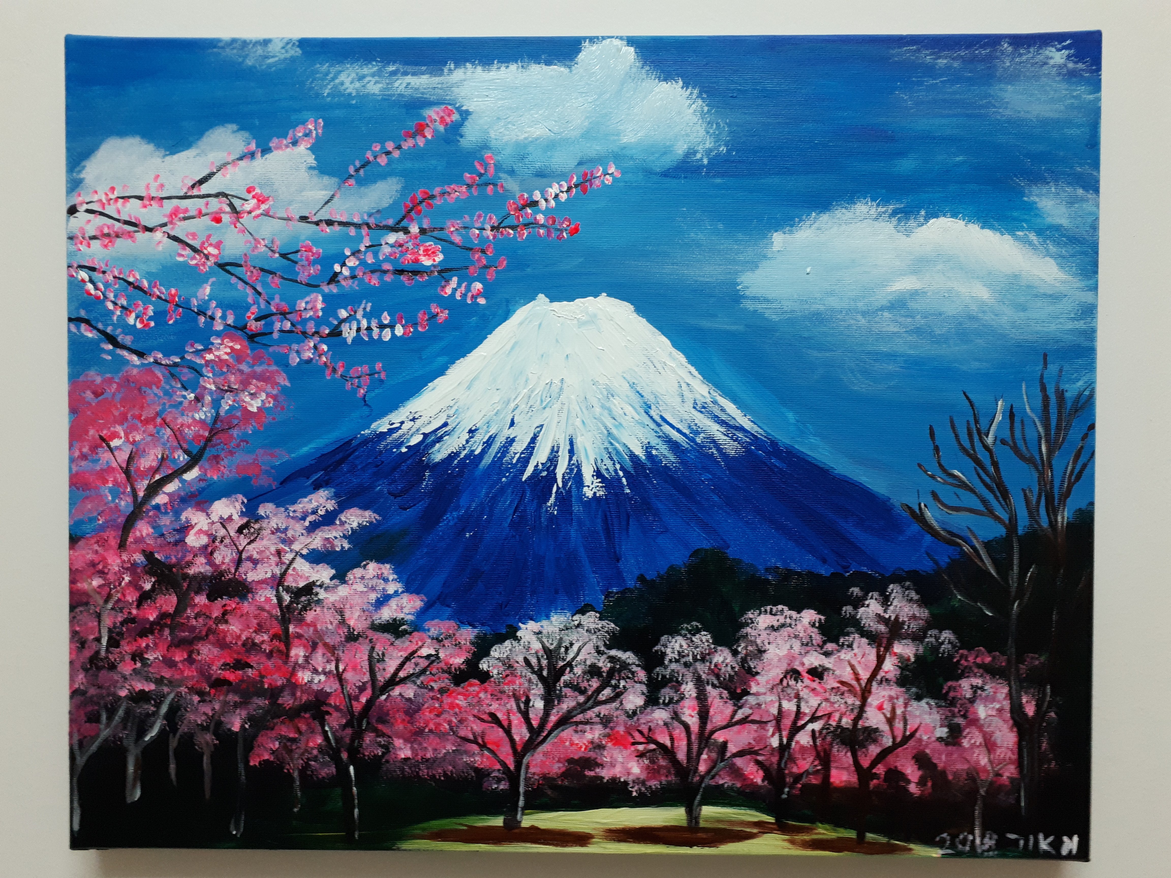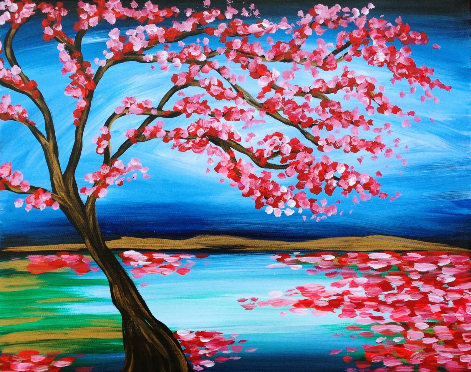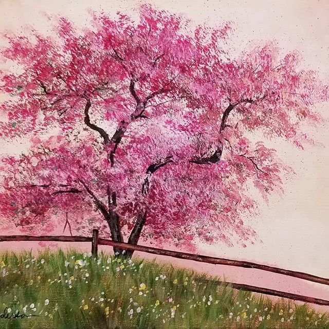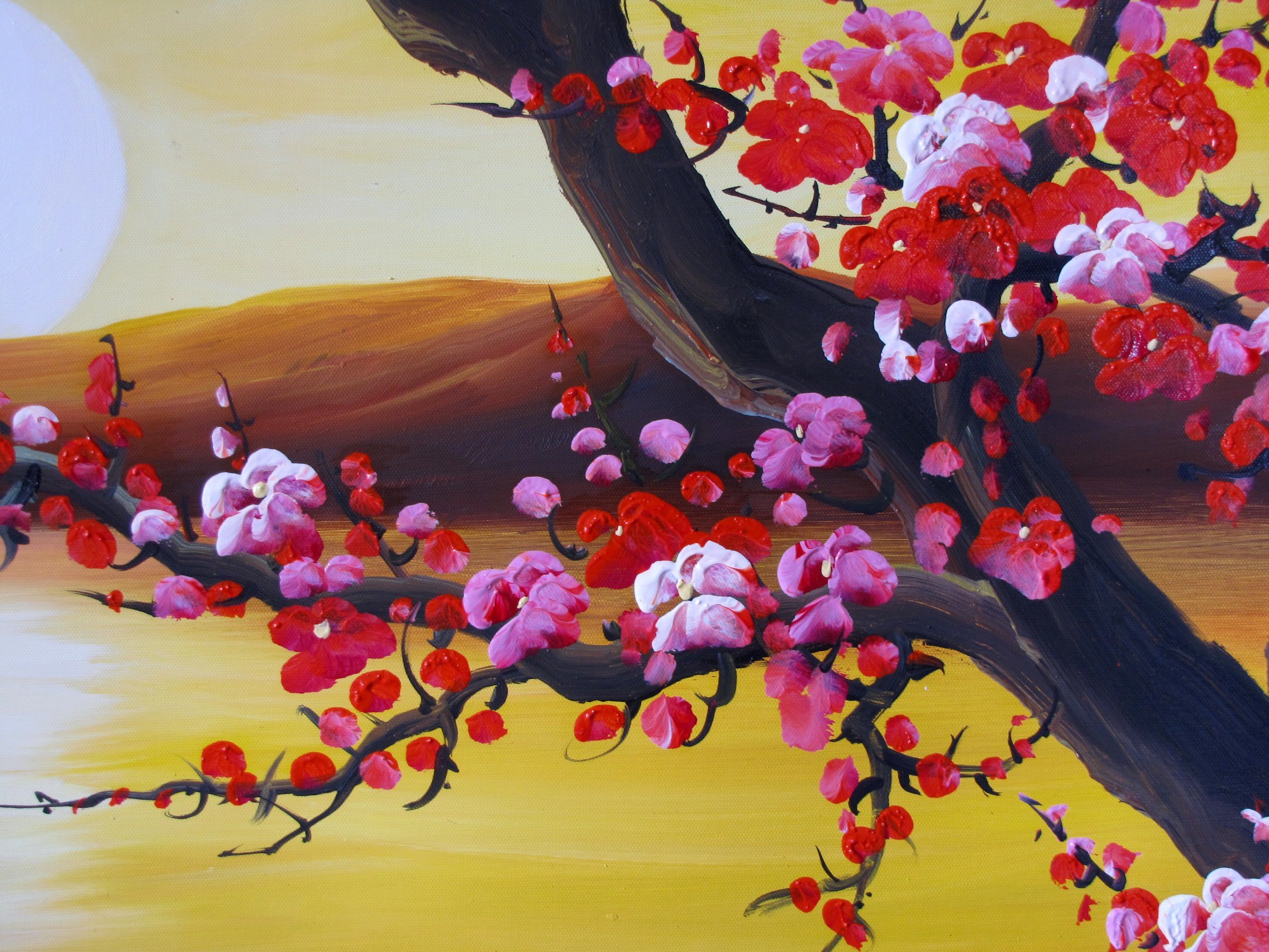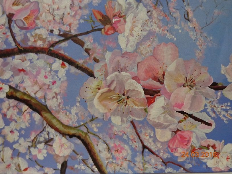Сакура акриловыми красками на холсте
