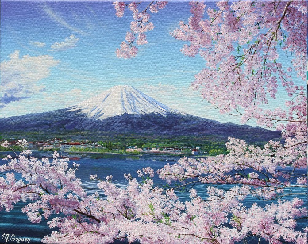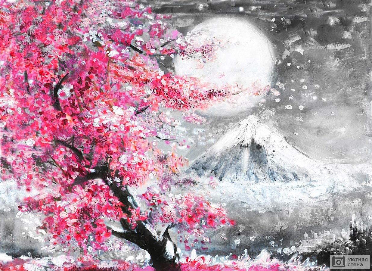 Картины Япония Сакура Фудзияма