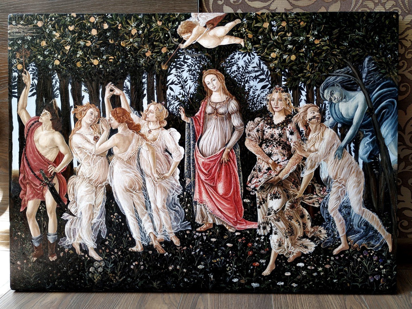 "Весна" - безусловно, одна из самых известных и восхитительных картин в истории живописи. Это произведение итальянского художника Сандро Боттичелли поражает своей красочностью, элегантностью и символическим содержанием. На холсте перед нами раскрывается изображение трех граций и пышного цветущего леса в полном ареале весенней прелести. Каждая деталь картины тщательно проработана: плавные линии фигур, мягкие переходы тонов, яркая палитра создают иллюзию живого движения и природной красоты. "Весна" отражает классические мифологические мотивы и символы, такие как наличие Венеры, майские цветы, птицы и прочие элементы, которые сочетаются и образуют гармоничное целое. Картина Сандро Боттичелли "Весна" продолжает вдохновлять и пленять своей утонченностью и эстетической привлекательностью и по сей день.