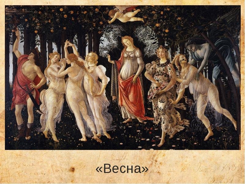 Сандро Боттичелли. Весна. 1482 Г., галерея Уффици, Флоренция.