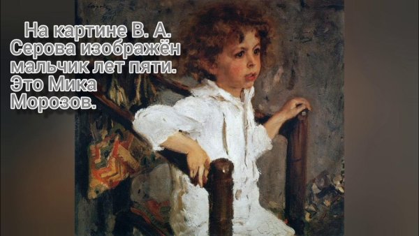 Мика Морозов - это название картины, созданной талантливым художником. В этой работе художник передает уникальную атмосферу зимнего пейзажа. Картина Мика Морозов представляет собой одновременно иллюстрацию и глубокий символический образ, который захватывает взгляд зрителя своей красотой и эмоциональностью. Здесь художник виртуозно использует цвета, свет и тени, чтобы донести до зрителя неповторимое чувство холода и мистики, которое окутывает зимний пейзаж. Работа Мика Морозов приковывает внимание своей оригинальностью и необычностью исполнения, в которой каждая кисточка художника создает прекрасное произведение искусства, воплощающее в себе силу и красоту природы.